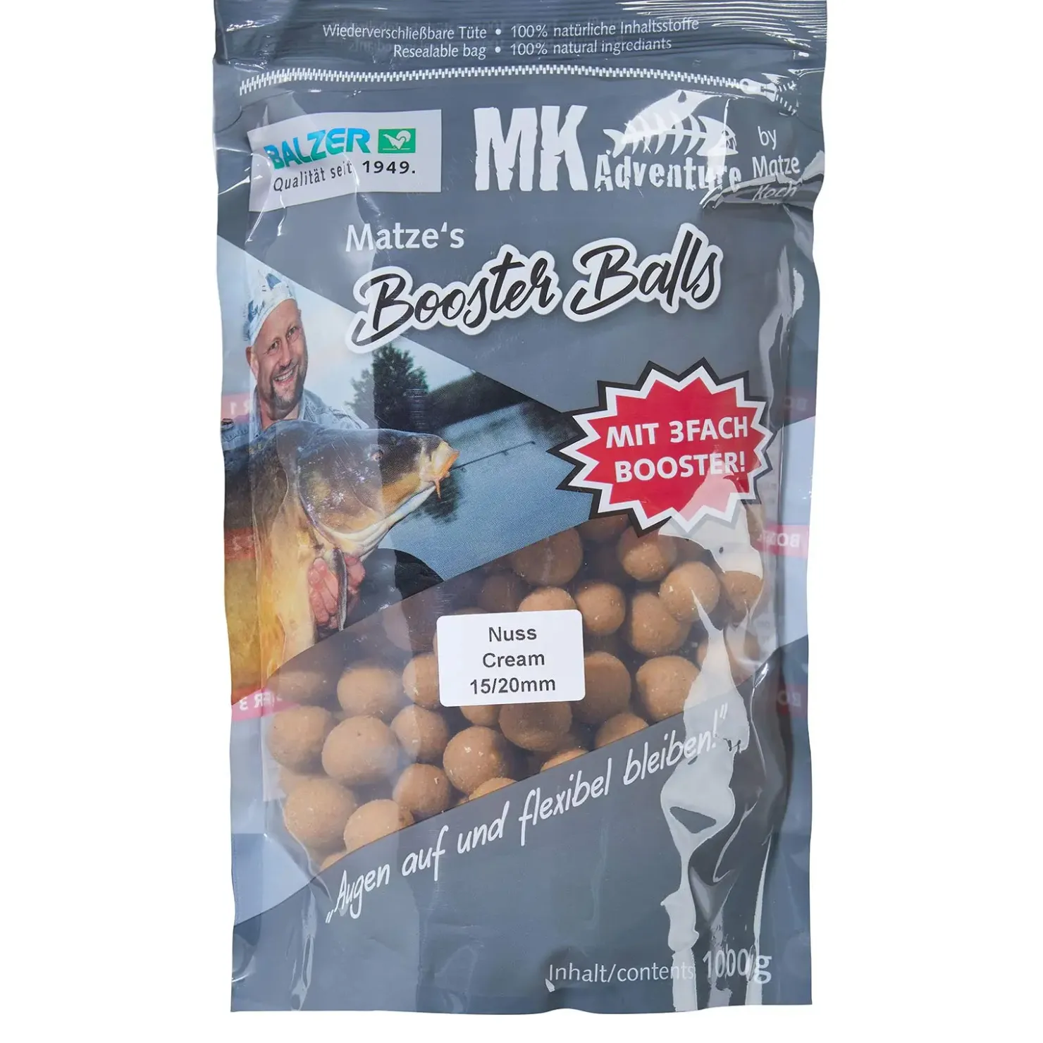 Matze´s Booster Balls“ haben die Eigenschaft, die wertvollen Inhaltsstoffe der Proteinkugeln noch schneller ans Wasser abzugeben. Umso effektiver setzen die Kugeln ihre Lockwirkung frei und ziehen Fische aus großem Umkreis an die Futterstelle. Trotz einer unglaublich attraktiven Konsistenz, die nachweislich mehr Fische fängt, halten sie die ganze Nacht lang am Haken. Bei extremen Weißfisch- oder Krebsproblemen, kann man auch die Booster Balls problemlos nachhärten lassen. Einfach einige Tage lang offen liegen lassen, bis der gewünschte Härtegrad erreicht ist.