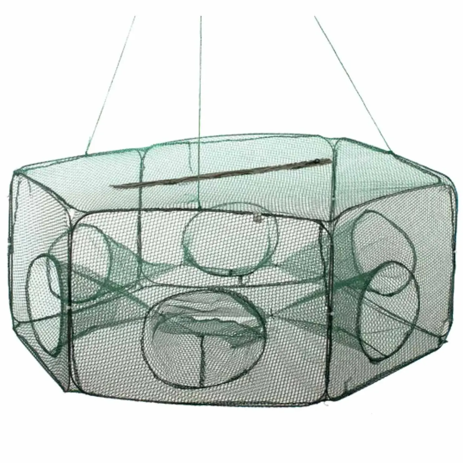 Diese 6-eckige Köderfisch-Reuse überzeugt durch den imposanten Durchmesser von 60 Zentimetern. Diese Reuse ist für den Fang von Fischen bis zu einer Länge von 12 Zentimetern ausgelegt.