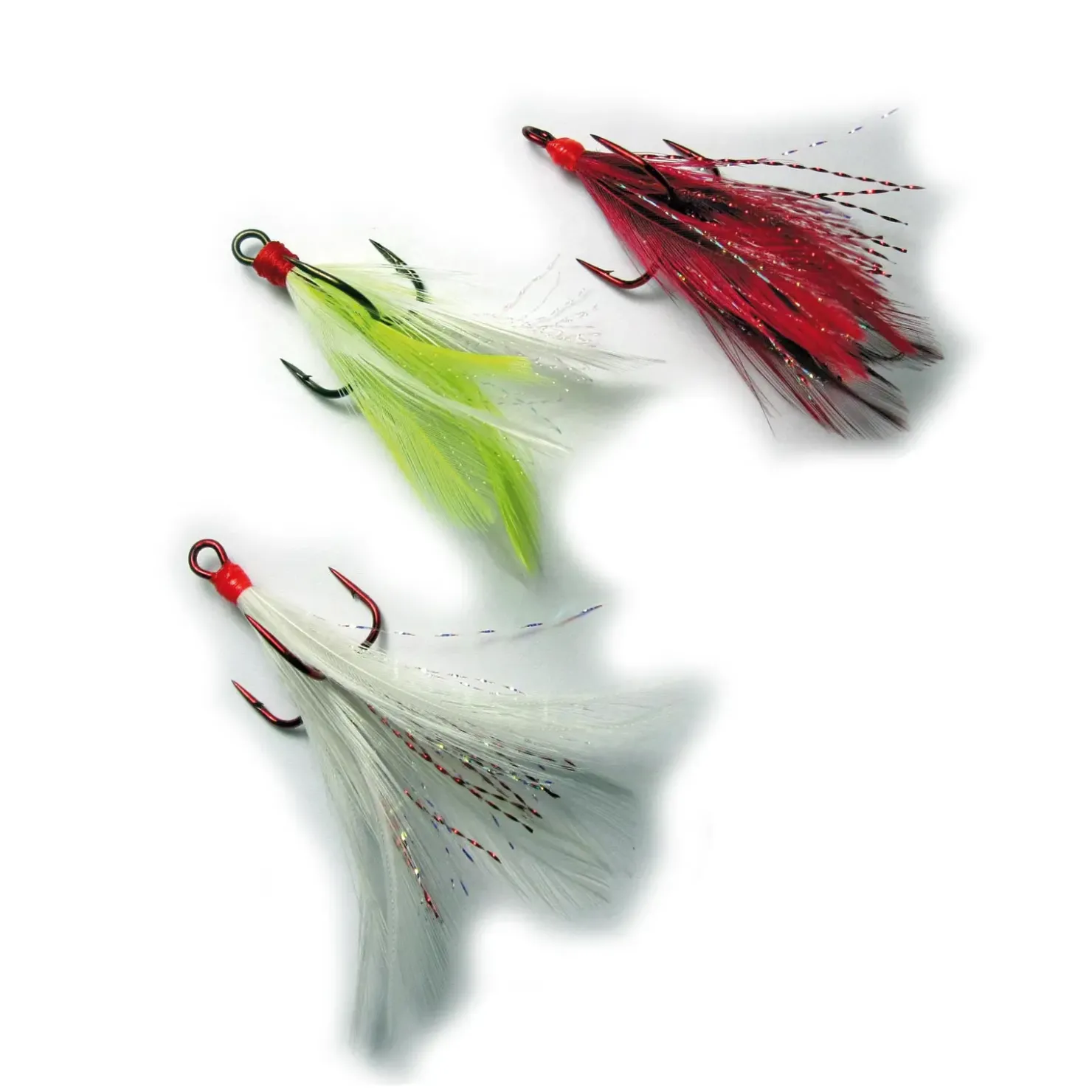 In diesem Hakenset erwarten Sie Drillingshaken mit Federn. An Kunstködern montiert, können diese Haken die Fängigkeit der Köder deutlich erhöhen!