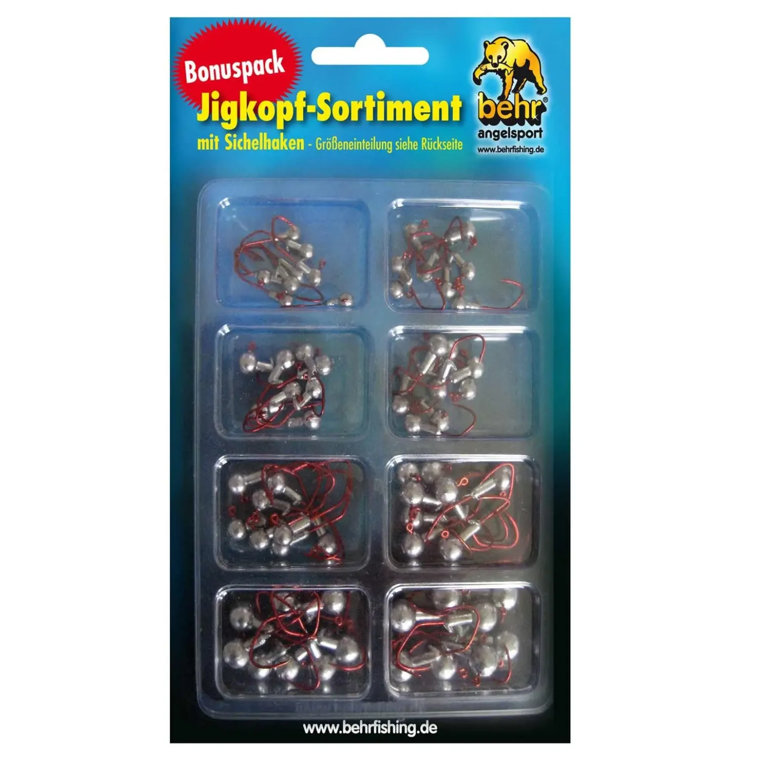 Merkmale Behr Jigkopf Set 64 Stück: Inhalt 64 Jigköpfe – Hakengröße 2 bis 6 – Gewicht 0,8 bis 5 Gramm – Hakenfarbe rot. Klassische Rundkopf-Form