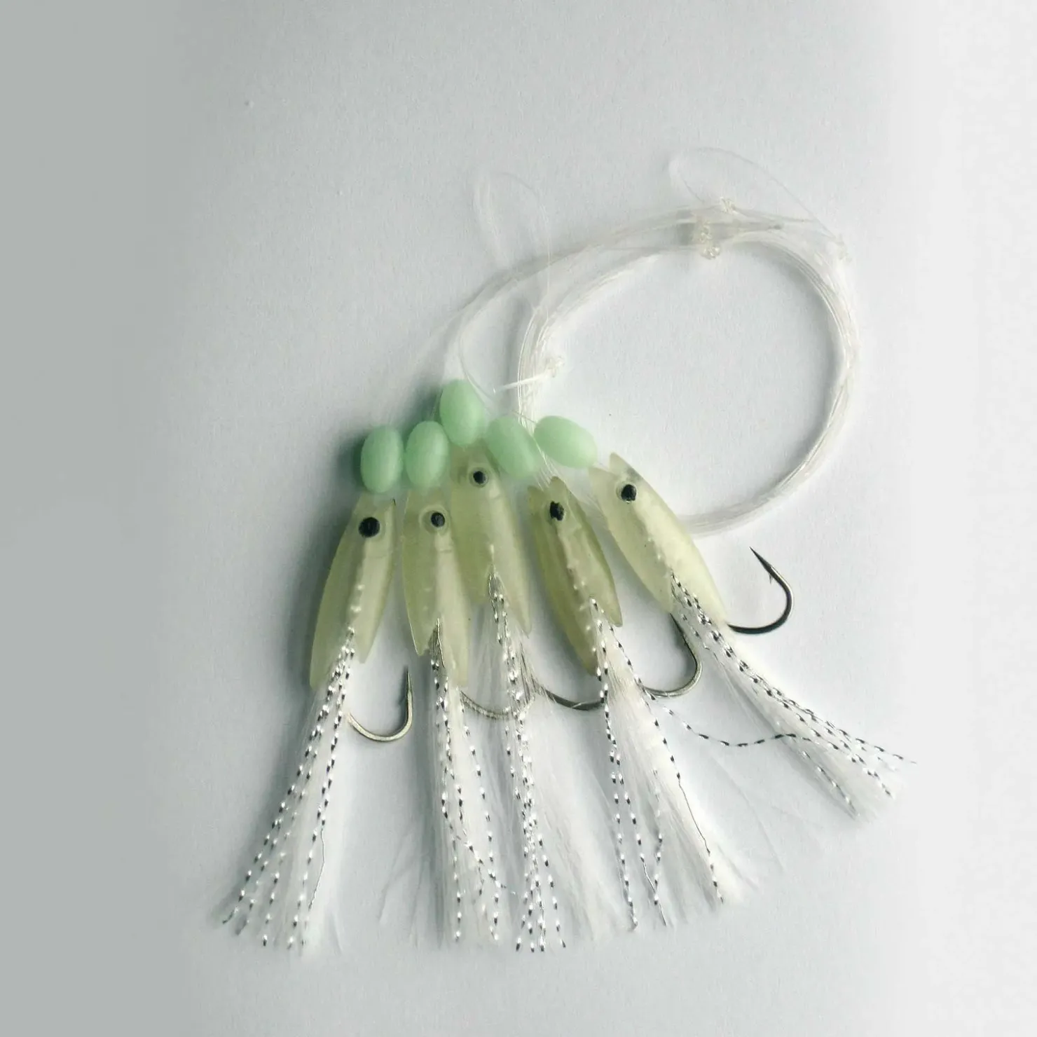 Beliebtes Makrelenvorfach in hochwertiger Ausführung und mit hoher Fangqualität. Ausgestattet mit Fischimitationen und selbstleuchtenden Lockperlen.