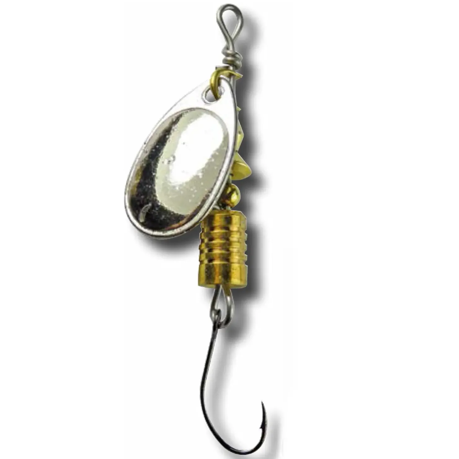 Bewährter und beliebter Forellenspinner, mit leichtdrehendem Spinnerblatt. Der Spinner ist mit einem feindrähtigen und scharfen Einfachhaken ausgestattet, der in der Größe exakt auf den Blinker angepasst ist.