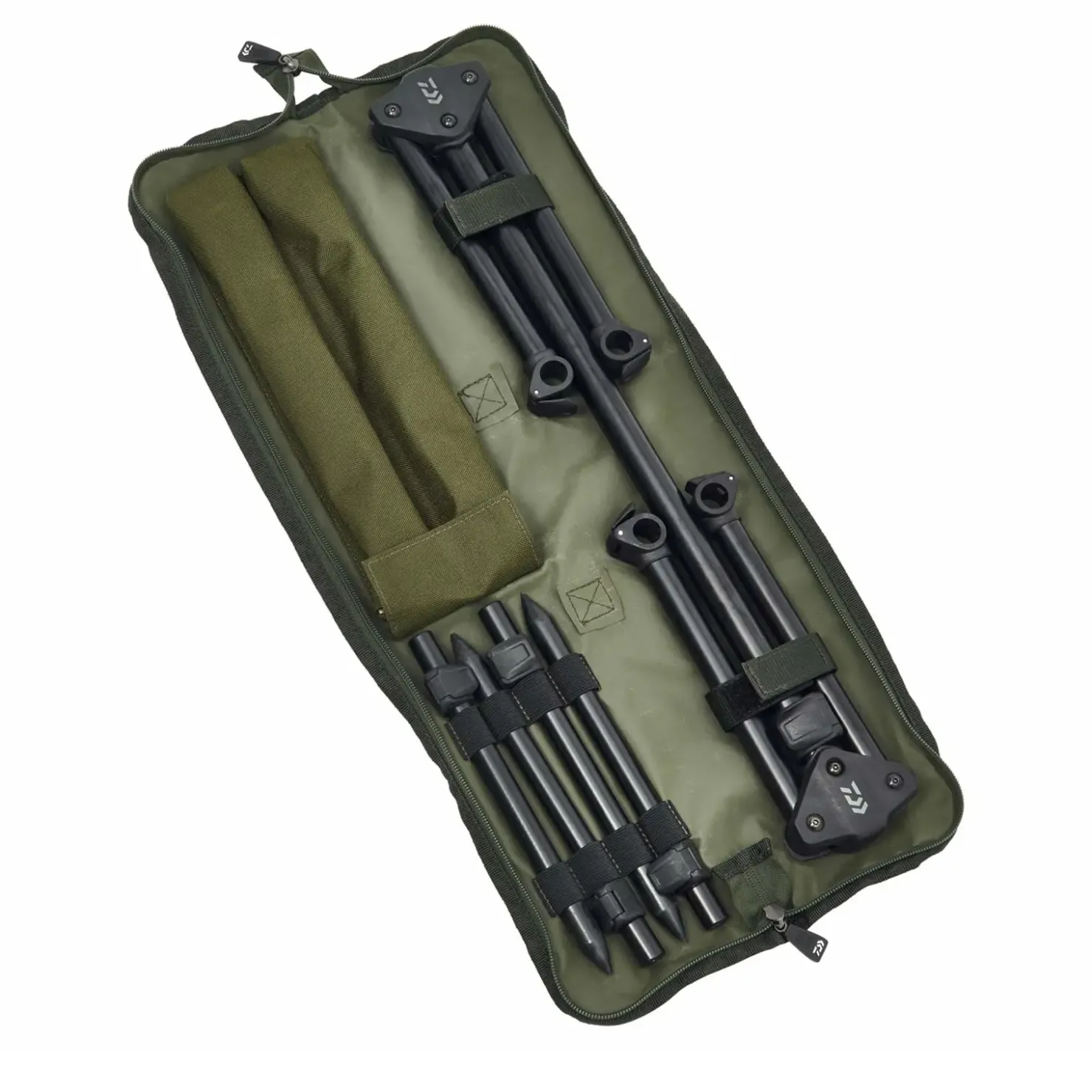 - Vier einstellbare Banksticks für optimalen Halt und Ausrichtung deiner Ruten
