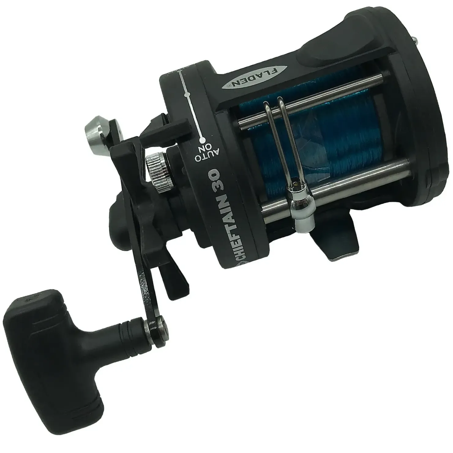 Diese Fladen Chieftain 30 ist eine leistungsstarke Multirolle mit Sternbremse und automatischer Schnurführung, ausgelegt für den harten Angeleinsatz in Norwegen & Co. Sie verfügt über einen Line Alarm, eine Einhandkurbel und ist mit einem Kugellager ausgestattet. Diese Rolle ist mit monofiler Hochleistungsschnur 270 m/0,45 mm ausgestattet. Das Preis-/Leistungsverhältnis dieser Multirolle begeistert.