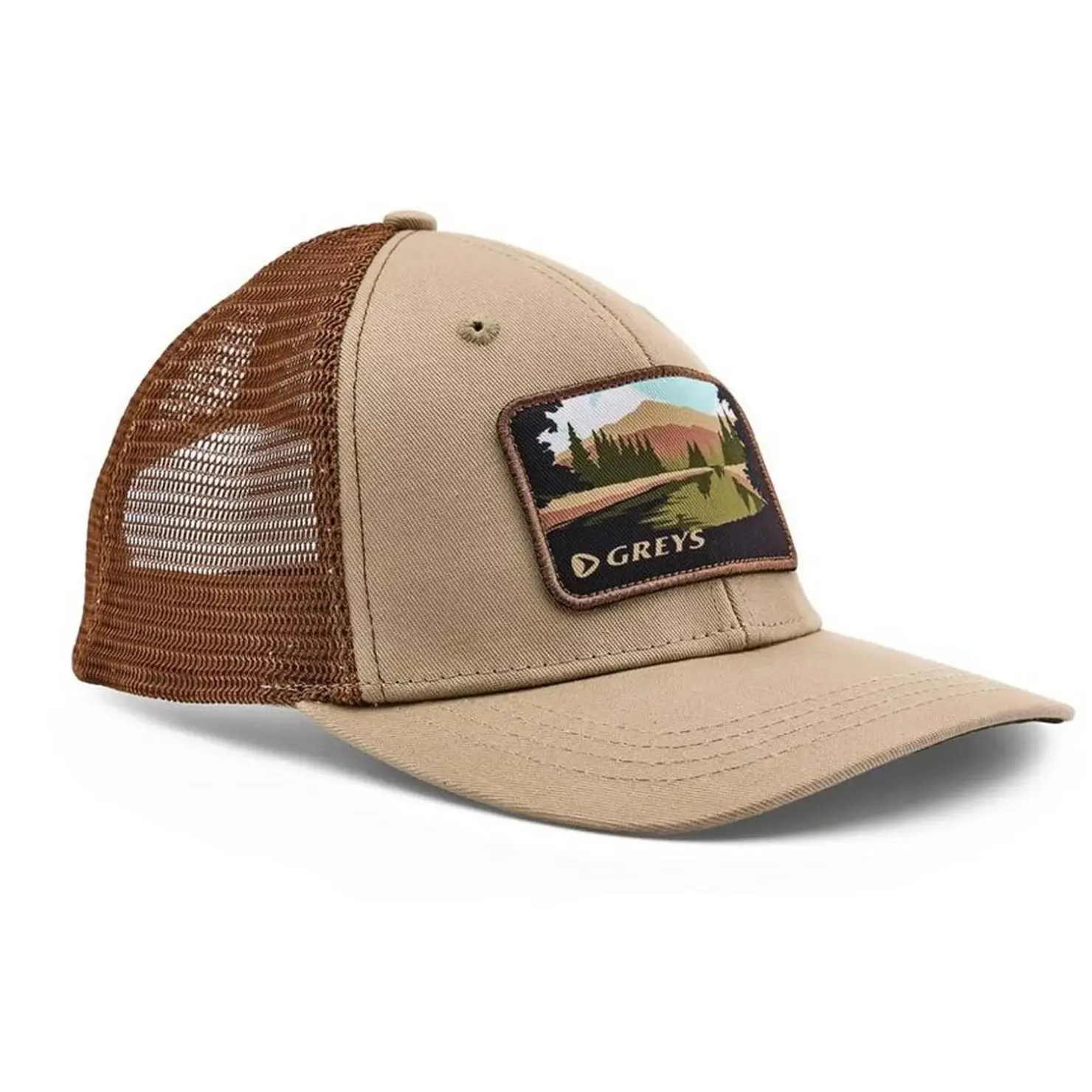 Strukturierter, verstellbarer Greys Scene Hat Mütze mit 6 Paneelen im mittleren Profil und gewebter Grafik auf der Vorderseite sowie einem dunklen Untervisier, um Blendeffekte zu vermeiden. Die innen verschweißten Nähte und die Köpereinlage auf der Vorderseite spiegeln die hochwertige Verarbeitung dieses Huts wider.