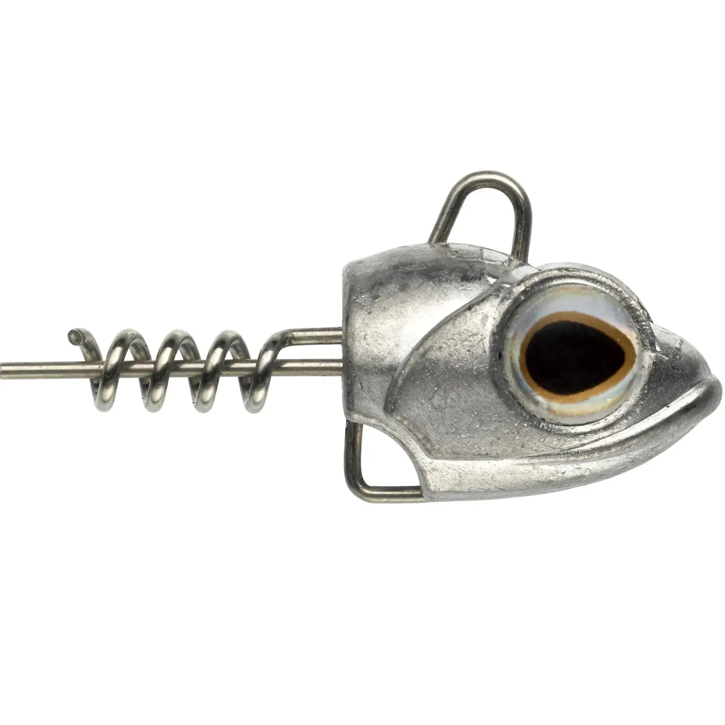 Das kompakte Design lässt sich schnell absenken und hält den Köder horizontal, entgegen der Kraft der Strömung und beim Arbeiten mit dem Köder. Der vordere Ring ist breit genug, um dicke Fluorcarbon-Vorfächer aufzunehmen, und einen Sprengring zum Befestigen eines Hakens. Ein übergroßes Auge dient als Auslöser, um Fische dazu zu bewegen, so nah wie möglich an den Kopf und den Haken heranzukommen. Dank der Edelstahl-Schraube ist es einfach, Ihren Softbait sauber an der flachen Rückseite des Kopfes zu befestigen. Dies garantiert, dass Ihr Köder in der perfekten Position bleibt.