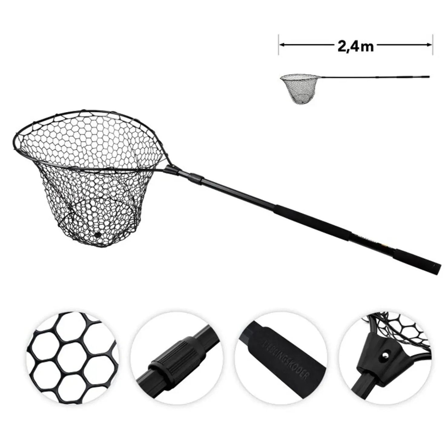Mit dem stabilen Aluminium-Teleskop-Stab, der sich auf bis zu 2,40 m ausziehen lässt, und dem 65×55 cm großen Kescherkopf ist der ULTRABOOST Kescher nicht nur funktional, sondern passt auch optisch perfekt zu deiner Lieblingsköder-Rute.