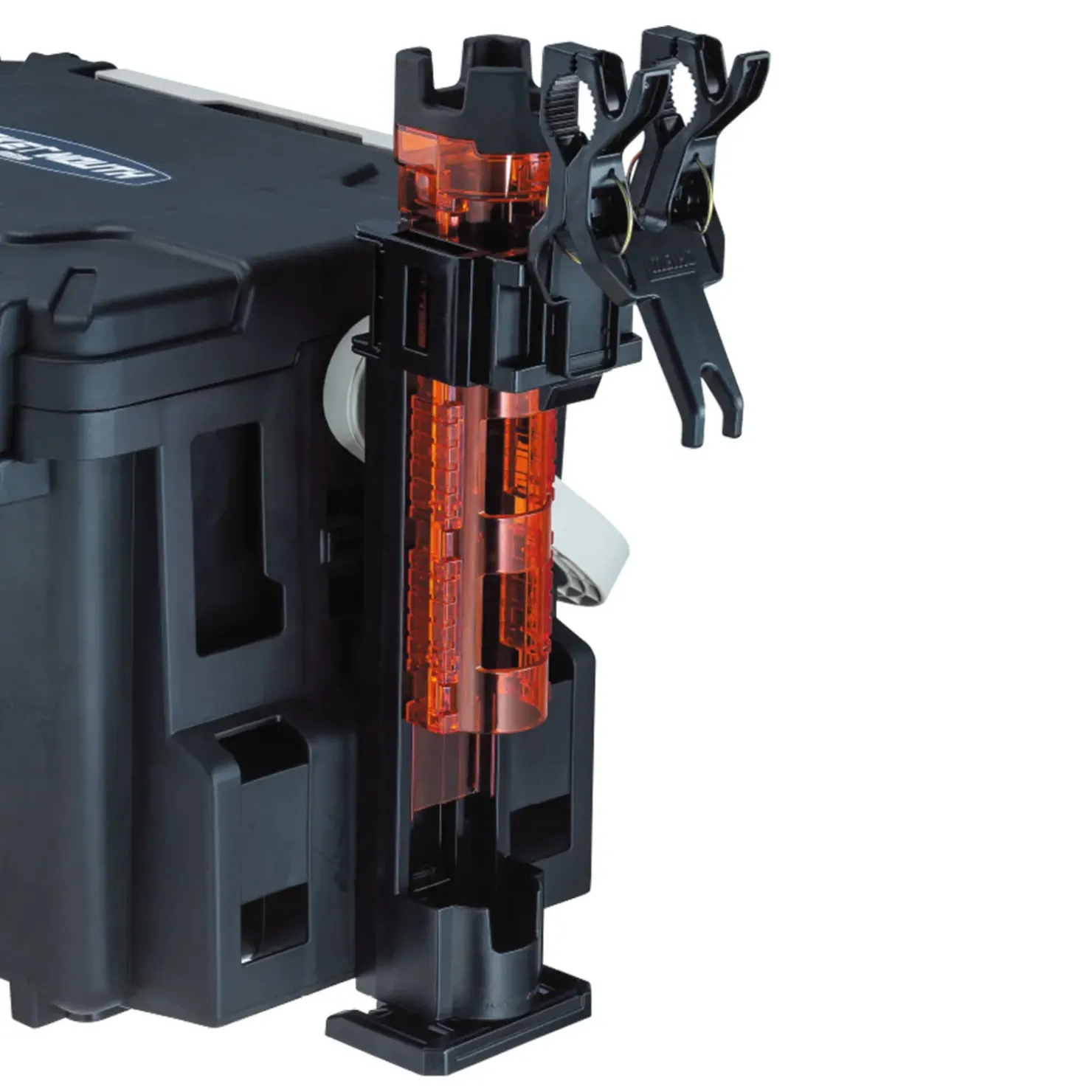 Ruten – und Universal-Befestigungsclip mit starker Federspannung, an alle Meiho Systemboxen adaptierbar.