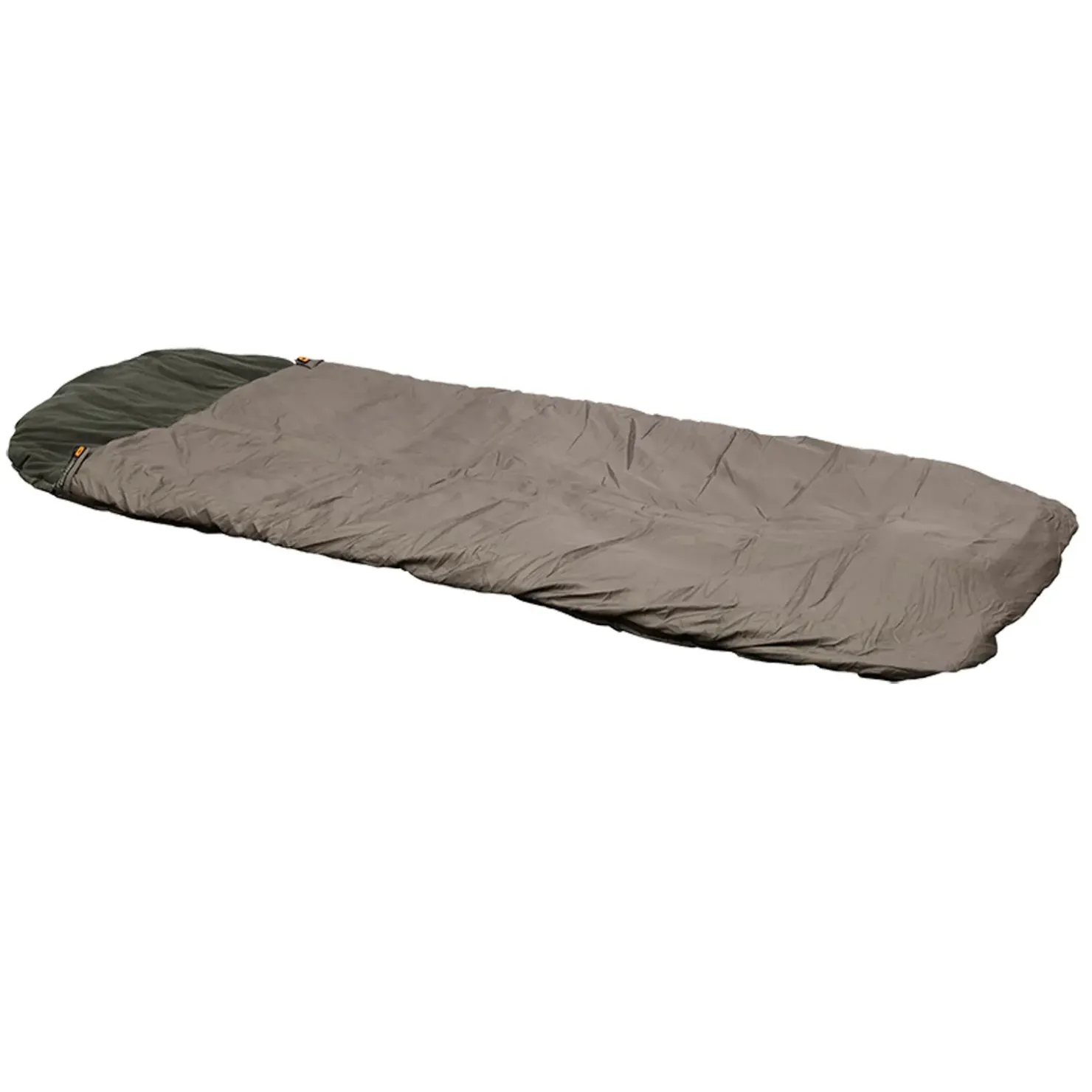Der aus ultraleichtem, atmungsaktivem Ripstop-Gewebe gefertigte Schlafsack verfügt außerdem über eine statisch positionierte Hohlfaserfüllung, die für eine optimale Isolierung und einen rundum besseren Komfort sorgt. Der Schlafsack lässt sich mit Hilfe von elastischen Gurten an Kopf- und Fußteil Ihrer Karpfenliege befestigen, während ein mittig platzierter und verstellbarer Gurt die Bewegungsfreiheit noch weiter einschränkt.