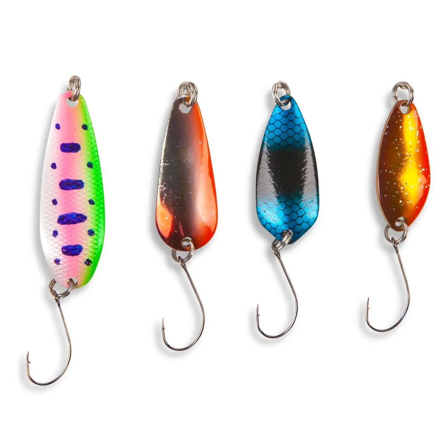 Diese leichtläufigen Spoons, im Sänger Specialist Forellen Spoon Set, wurden abgestimmt auf das gezielte Angeln von Forellen. Egal ob Teichanlage oder Fluss, sie imitieren perfekt die Beute der Salmoniden und verleiten die Fische schnell zum Biss.