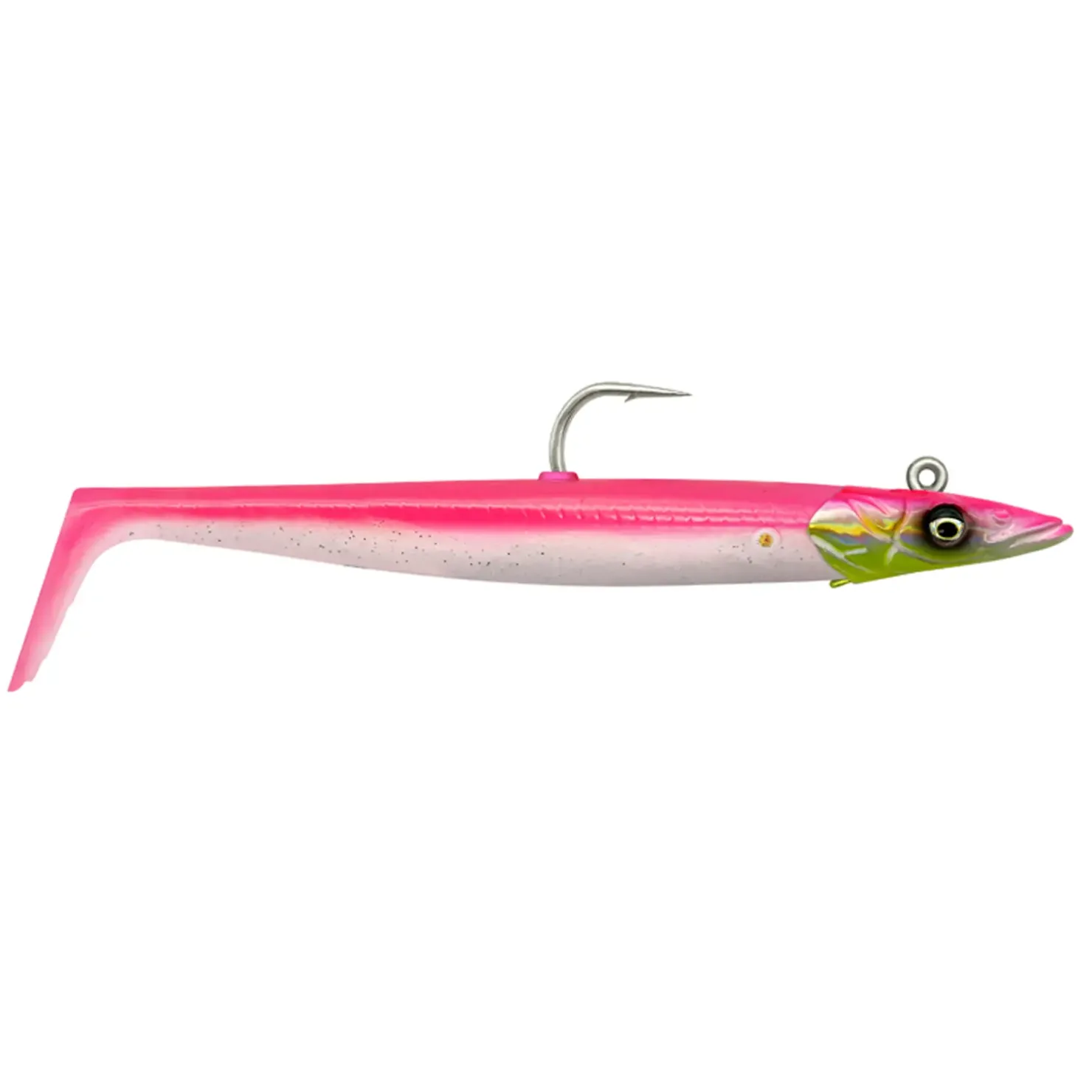 Der im Lieferumfang enthaltene Rise & Stand Up-Jigkopf sorgt für ein aufreizendes Laufverhalten. Der Sandeel V2 steigt bei Zug auf und steht in der Ruhephase am Grund aufrecht.