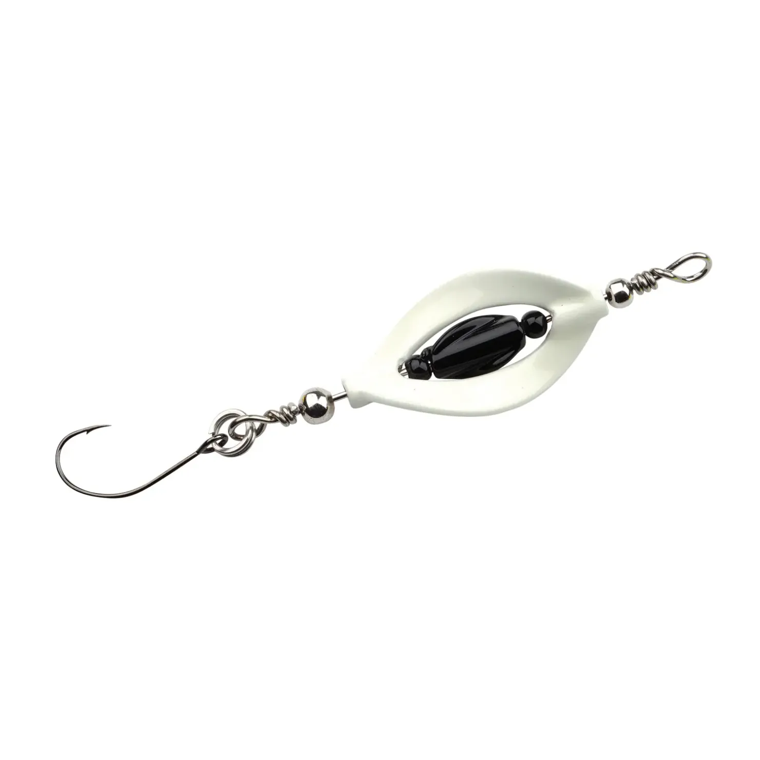 Dieser Köder ist mit einem weiteren Spinner in der Mitte aufgerüstet. Beide Blätter laufen entgegengesetzt und erzeugen beim Kurbeln einen starken und attraktiven Druck im Wasser.