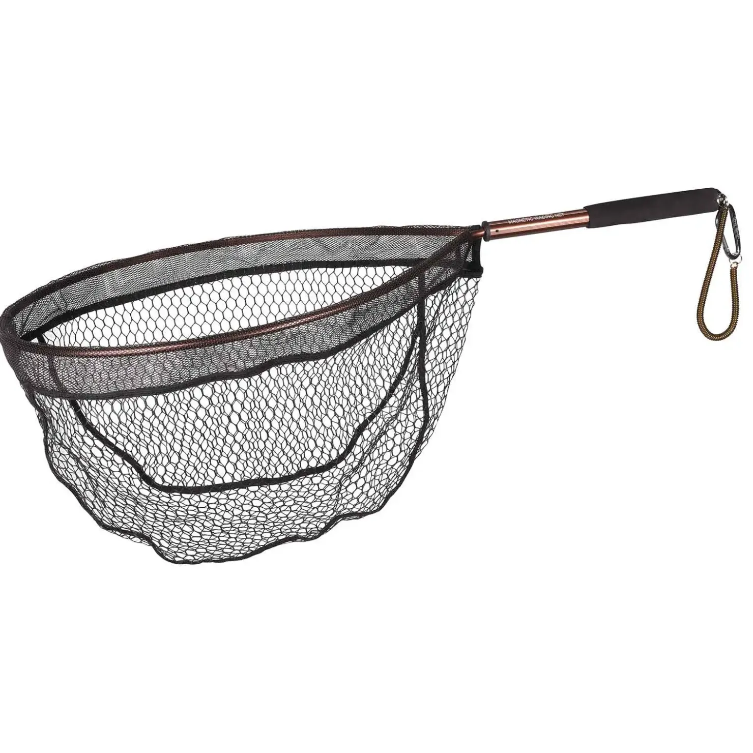 Der Kescher ist schwimmend und mit 12 mm beschichtetem Netzmaterial zum Schutz vor Haken ausgestattet und hat schnelltrocknende Materialeigenschaften. Der Karabiner kann an einer Tasche befestigt werden. Dank des starken Magnets kann der Kescher nach Gebrauch schnell und unkompliziert wieder an seiner Ausgangsposition befestigt werden.