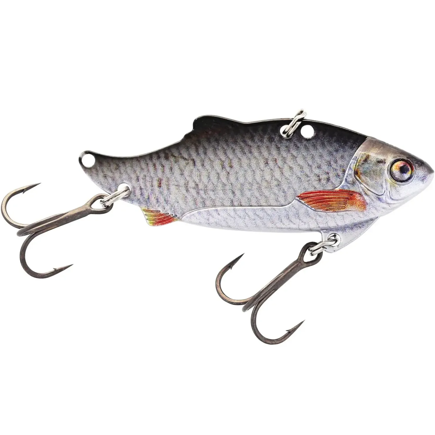 - Zwei Verbindungspunkte, der hintere mit vormontiertem Sprengring für harte Vibrationen bei gleichmäßigem Einholen und Jiggen – Für eine schnellere und härtere Aktion empfehlen wir die vordere Öse