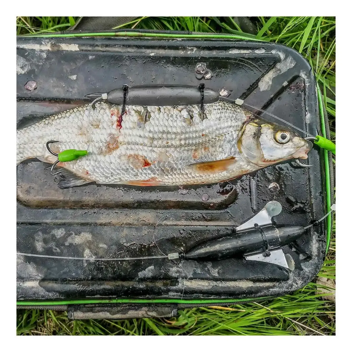 Die Zeck Deadbait U-Float wird zwischen zwei Haken montiert und einem toten Köderfisch auf den Rücken „geschnallt“ (Wichtig: Die Schwimmblase des toten Fisches darf nicht mehr intakt sein). Dadurch treibt der Köfi natürlich auf und in strömenden Gewässern wird verhindert, dass er rotiert und Schnurdrall entsteht. Weiterhin „spielt“ der Köderfisch durch die Strömung und den Auftrieb und „wedelt“ von links nach rechts. Aber natürlich kannst du das System auch im Stillgewässer einsetzen.