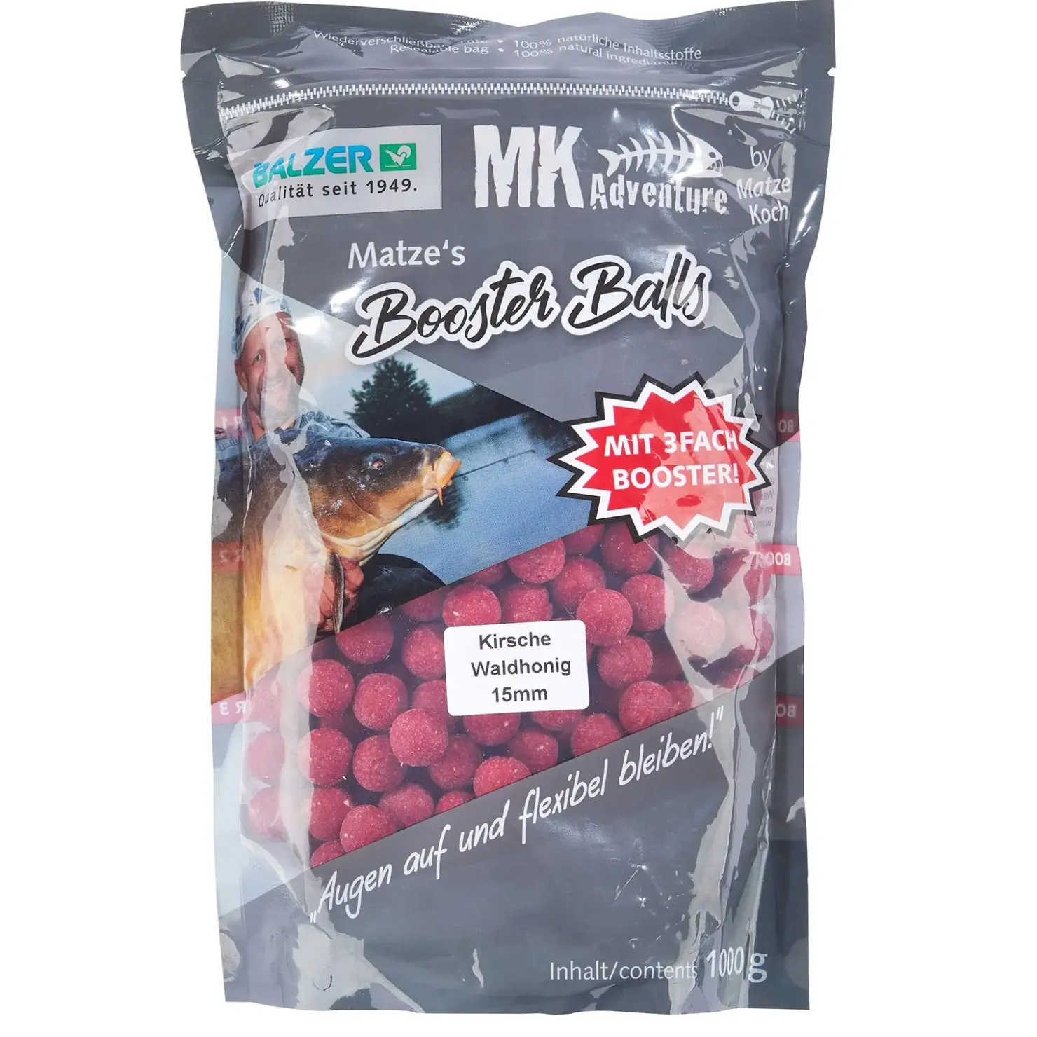 Die Matze Koch Booster Balls Boilies kommen mit völlig neuen Eigenschaften daher. Sie haben die Eigenschaft, die wertvollen Inhaltsstoffe der Proteinkugeln noch schneller ans Wasser abzugeben.