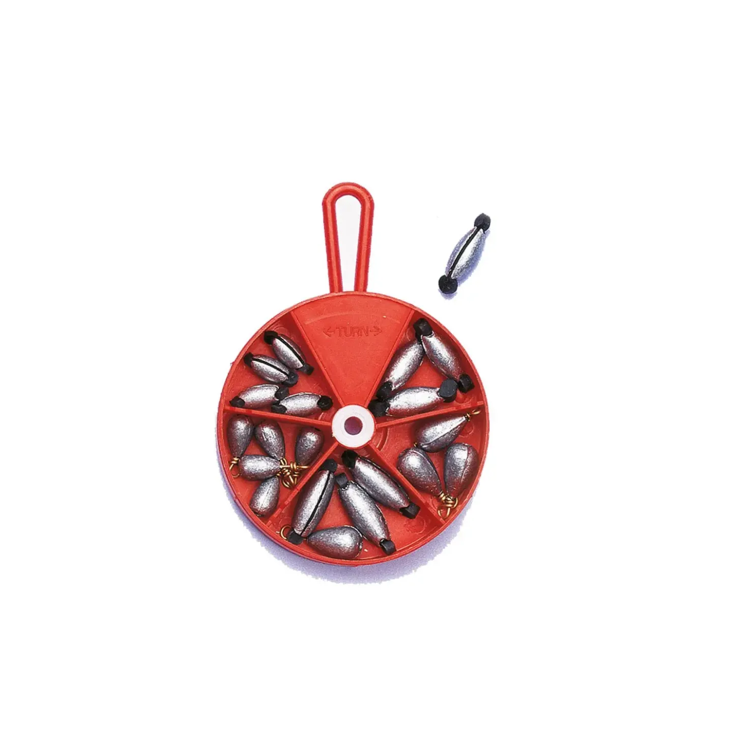 Qualitativ hochwertiges Angelblei Sortiment mit 25 Stück Inhalt, bestehendaus Birnenbleien mit Wirbeln und Bleioliven mit Innengummi. Die Lieferung erfolgt in einer praktischen und übersichtlichen Spenderbox.