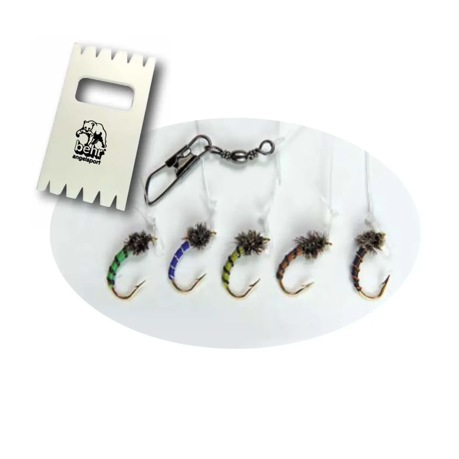 Die verwendeten Nymphen sind ihren natürlichen Vorbildern nachempfunden. Die koreanischen High-Tech Haken überzeugen durch chirurgische Schärfe. Bei dieser von Meisterhand gebauten Hegene ist jede einzelne Nymphe mit einem speziellen Schlaufenknoten gebunden, was in der Praxis eine natürliche Köderpräsentation bedeutet.