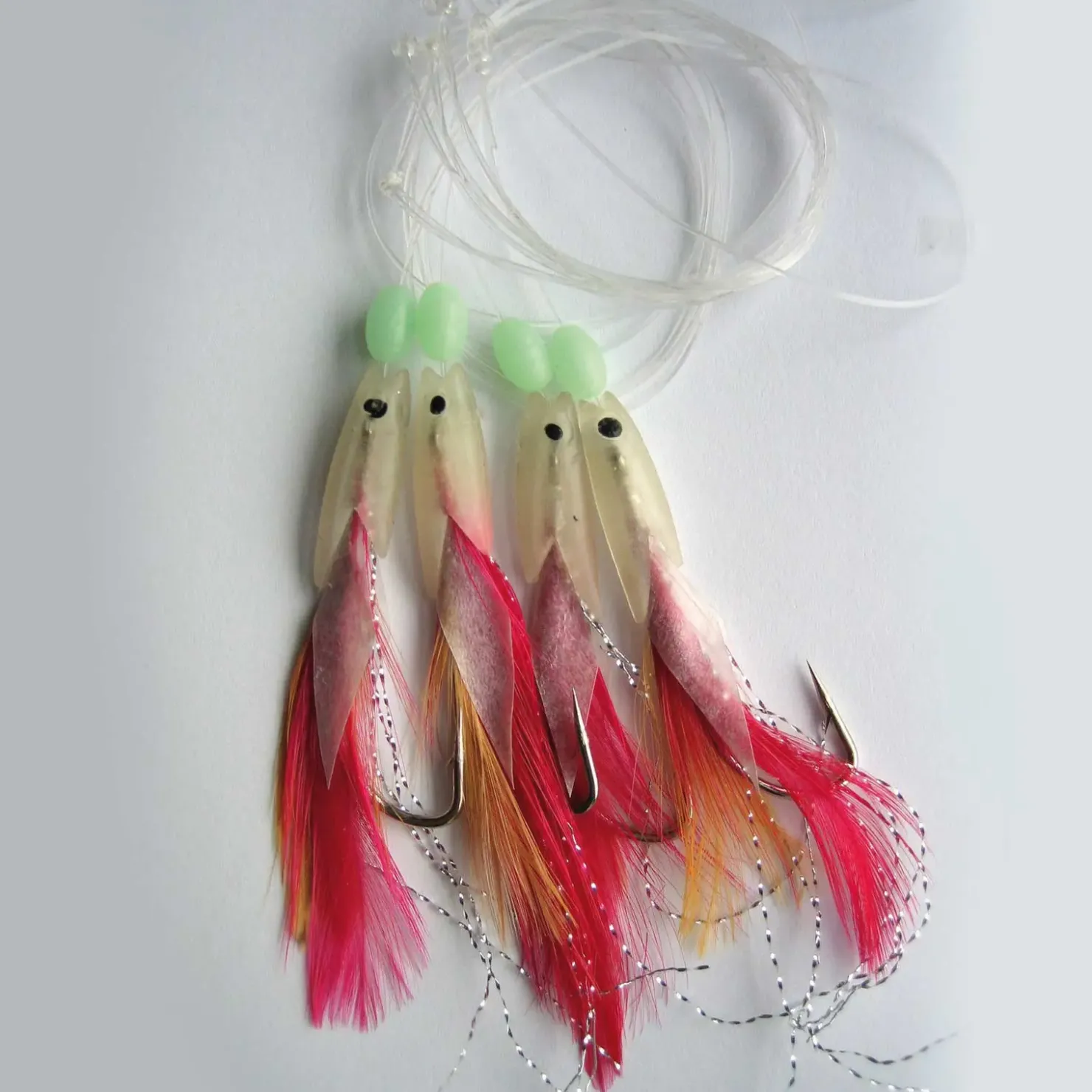 Beliebtes Makrelenvorfach in hochwertiger Ausführung und mit hoher Fangqualität. Ausgestattet mit Fischimitationen und selbstleuchtenden Lockperlen.