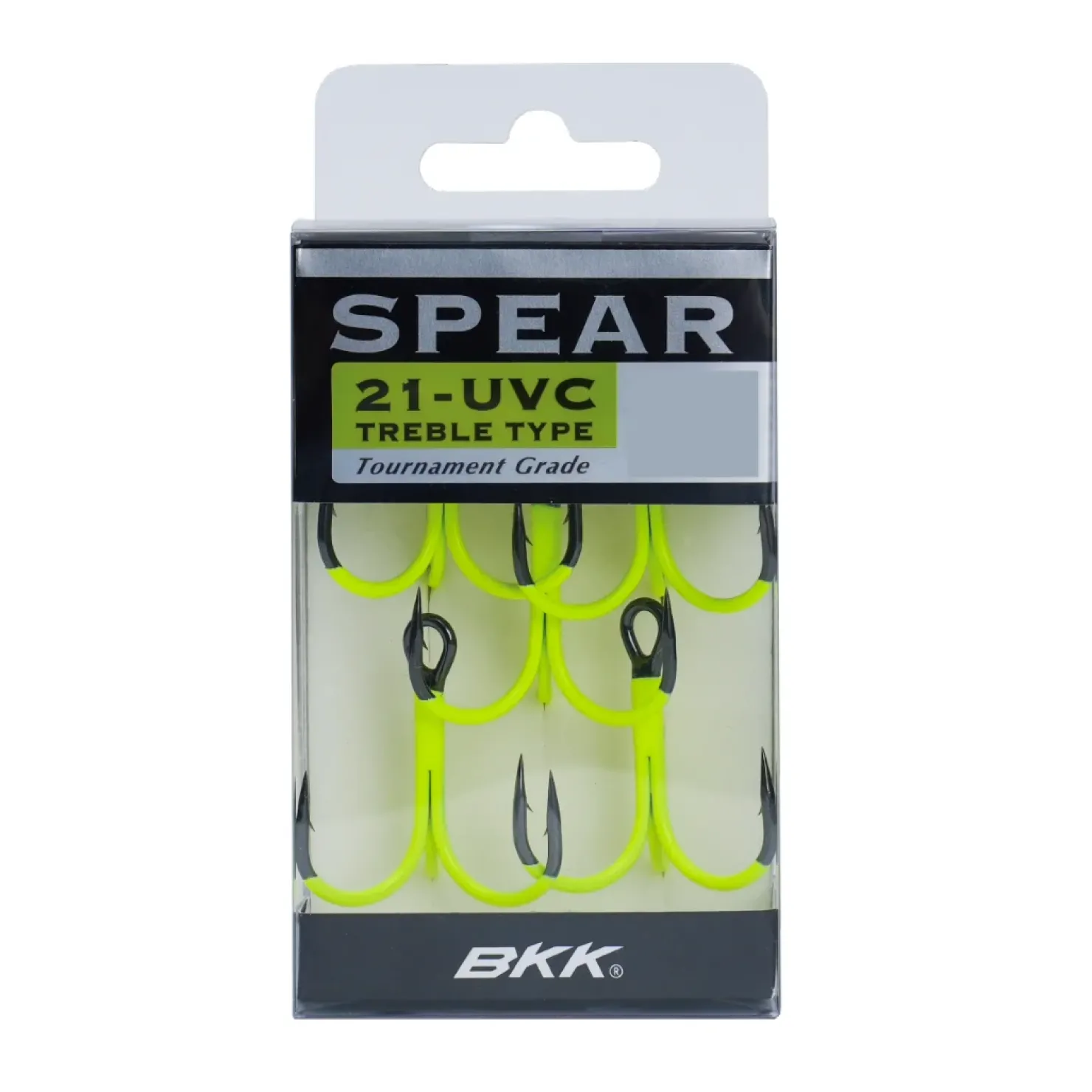 Der BKK Spear-21 Uvc Drillingshaken wurde für tiefe Süßwasseranwendungen entwickelt, um Anglern die Möglichkeit zu geben, bei schlechten Lichtverhältnissen zu fischen, insbesondere in tiefen und dunklen Gewässern, um sicherzustellen, dass Raubfische den Köder erkennen können.