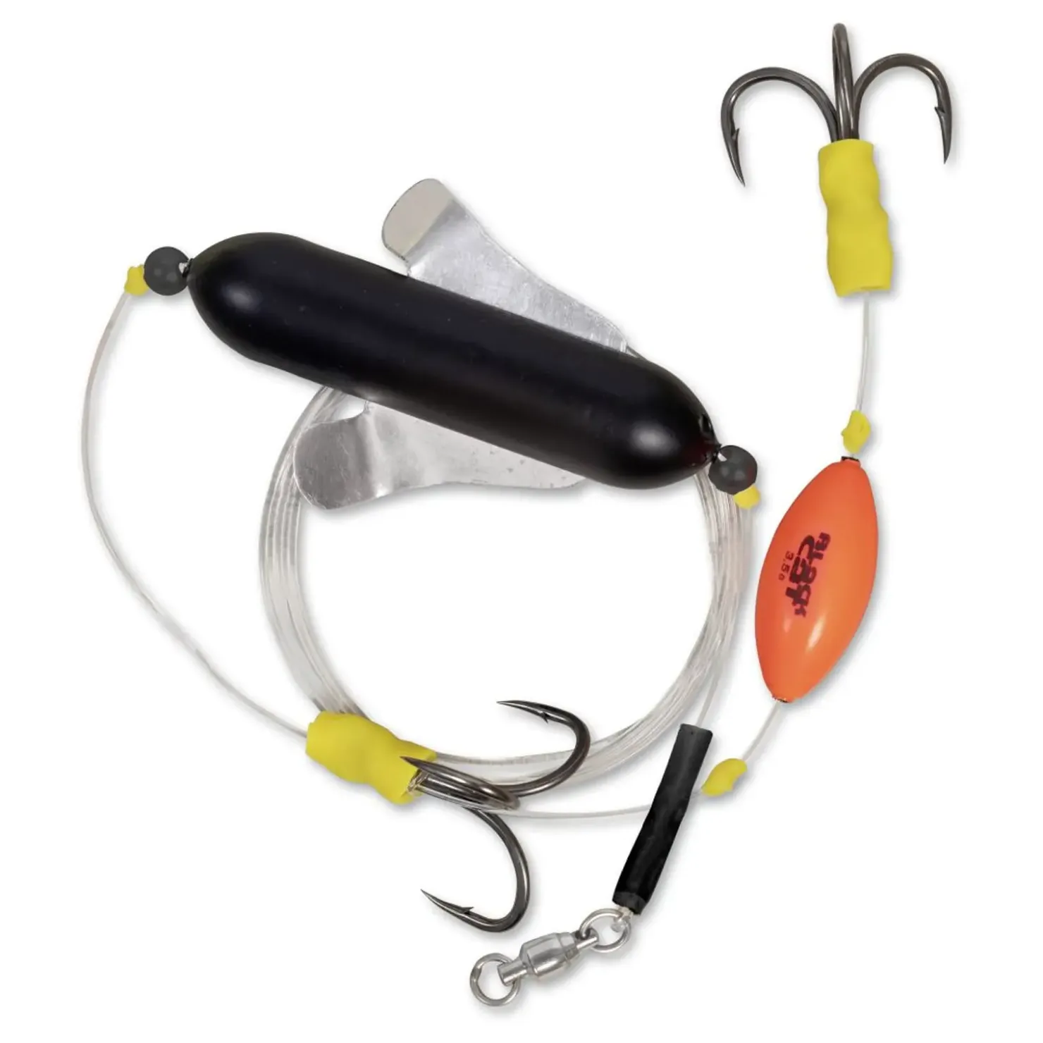 Um das Ködergewicht zu minimieren und einen sicheren Auftrieb auch von großen Wurmbündeln zu garantieren, liegt zwischen den beiden Drillingen noch ein kleiner Auftriebskörper.