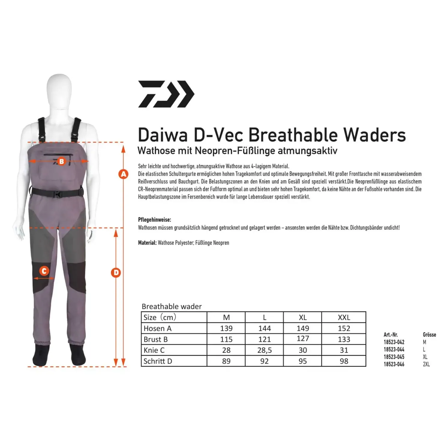Die Daiwa D-VEC Breathable Waders Wathose ist eine sehr leichte und hochwertige, atmungsaktive Wathose aus 4-lagigem Material.