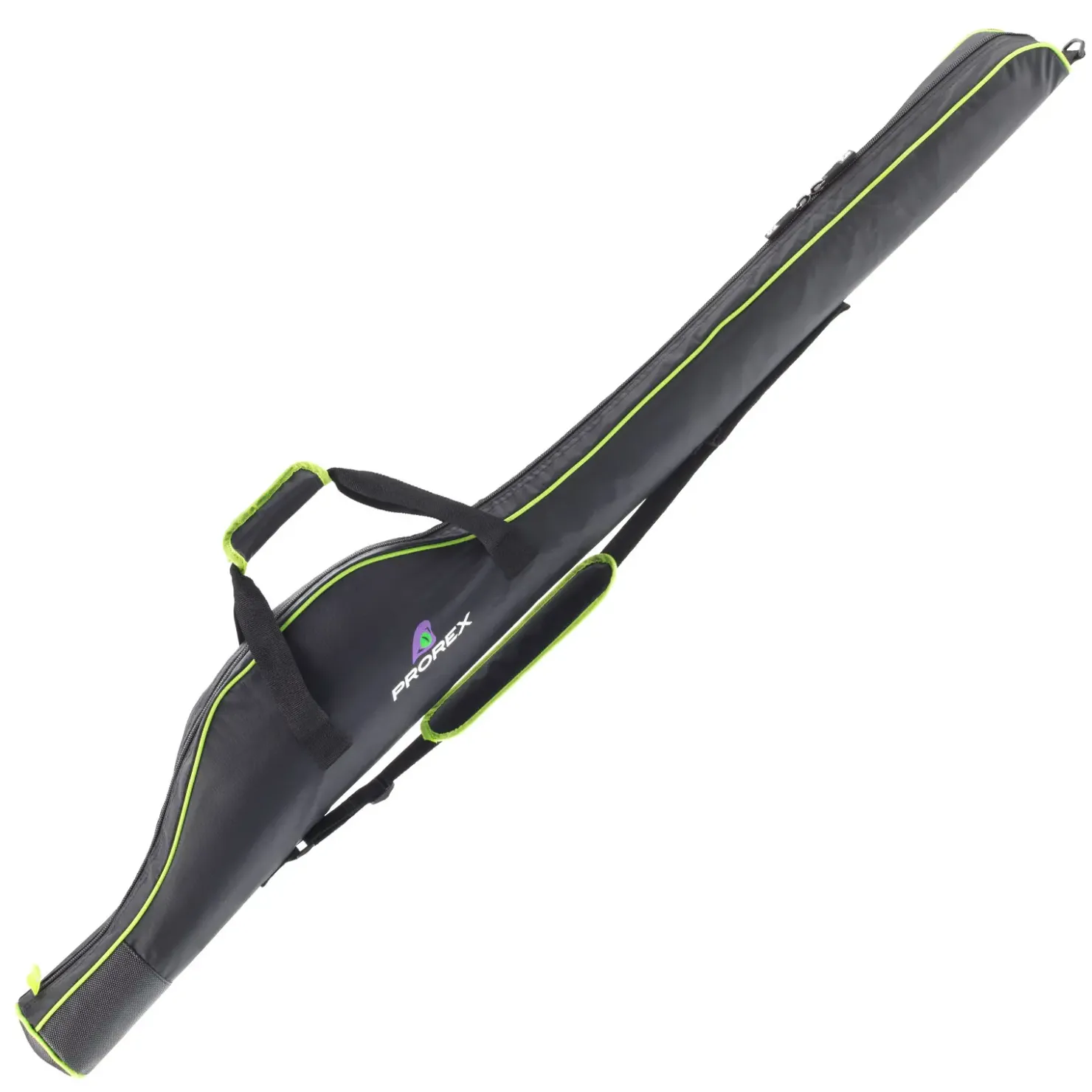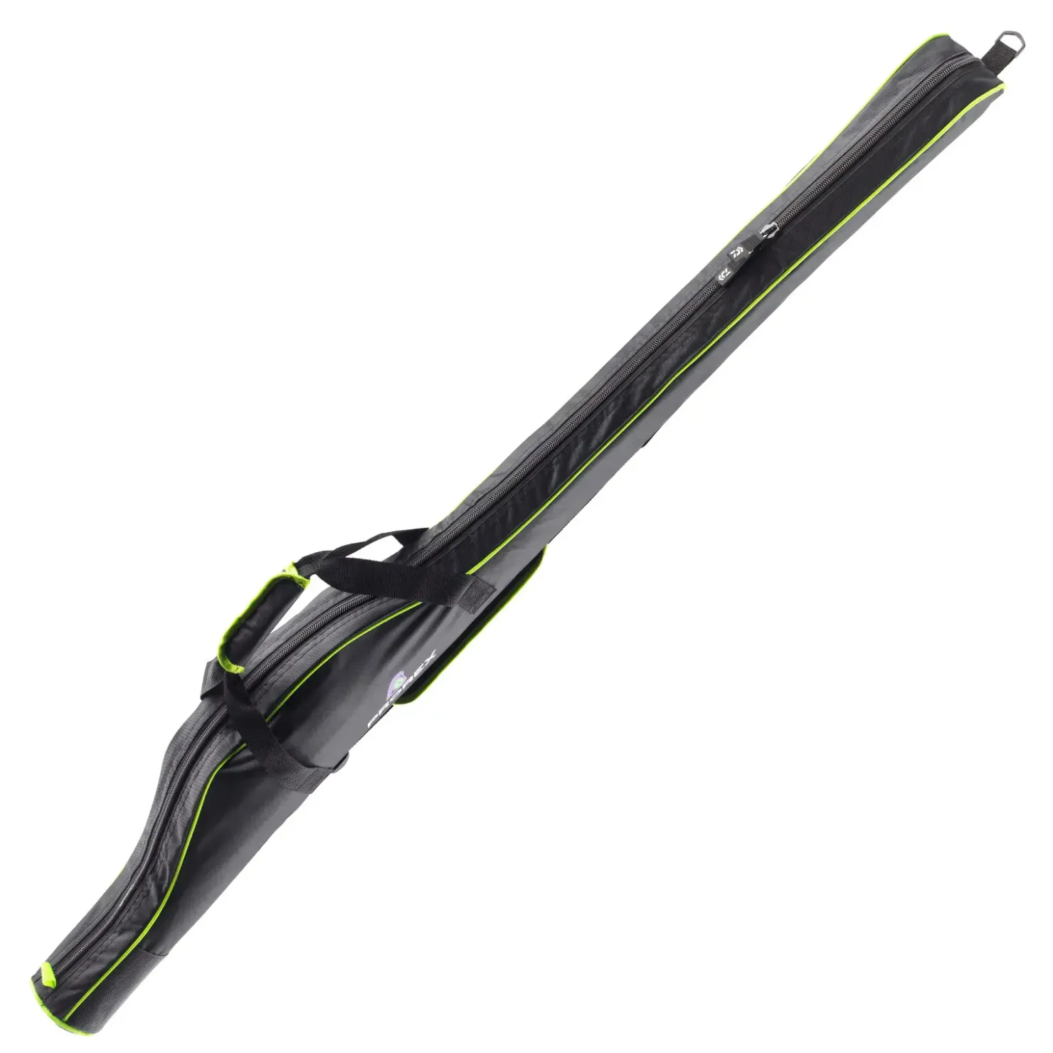 Dick gepolstertes Daiwa Prorex Rutenfutteral für eine montierte Rute. Das Unterteil ist mit einer Gummierung versehen, um das Eindringen von Wasser und Feuchtigkeit zu verhindern.
