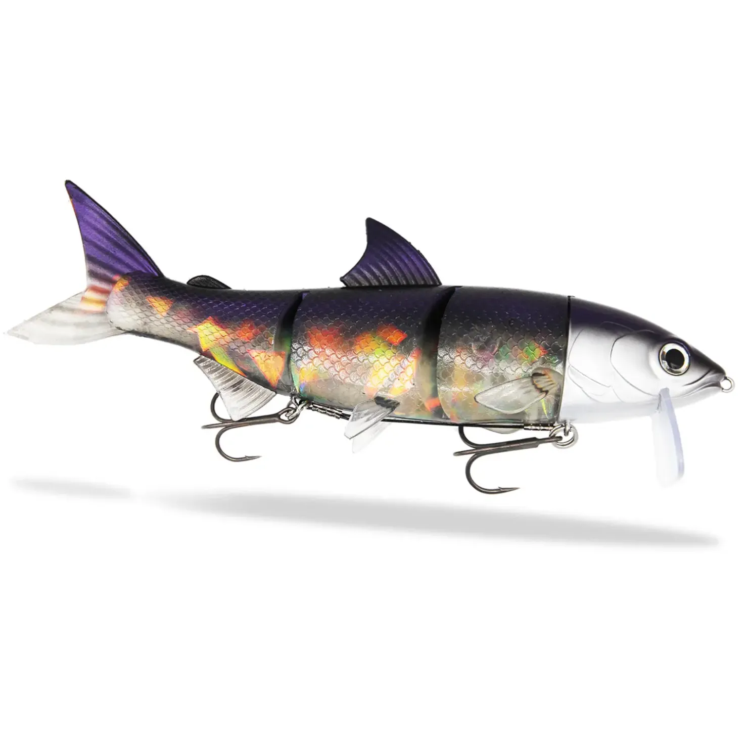 Der Köder kommt komplett angel-fertig, mit ummanteltem Vorfach (ca. 35 kg Tragkraft), 2 robusten und scharfen Drillingen sowie einer zweiten Ersatzlippe. Der hintere Drilling ist eine Nummer kleiner als der Vordere und beeinflusst das Schwimmverhalten positiv. Bei einem Biss kann der hintere Haken aus dem Köder gleiten und immer wieder durch das FishingGhost Pin-System ohne Köderschäden zurückgesteckt werden. Dadurch sinkt auch die Wahrscheinlichkeit, den Fisch bei einem Drill zu verlieren.