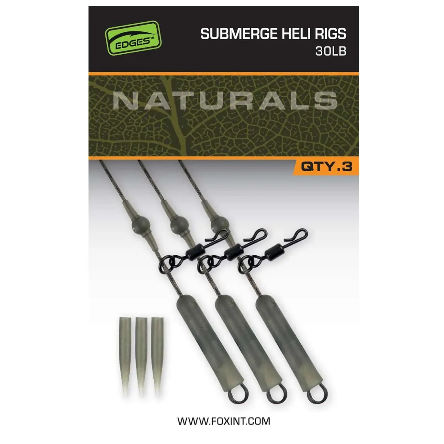 Das Fox Naturals Submerged Heli Rigs Karpfen-Zubehör sind bleifreie und vorgespleißte Submerge Naturals Leader.