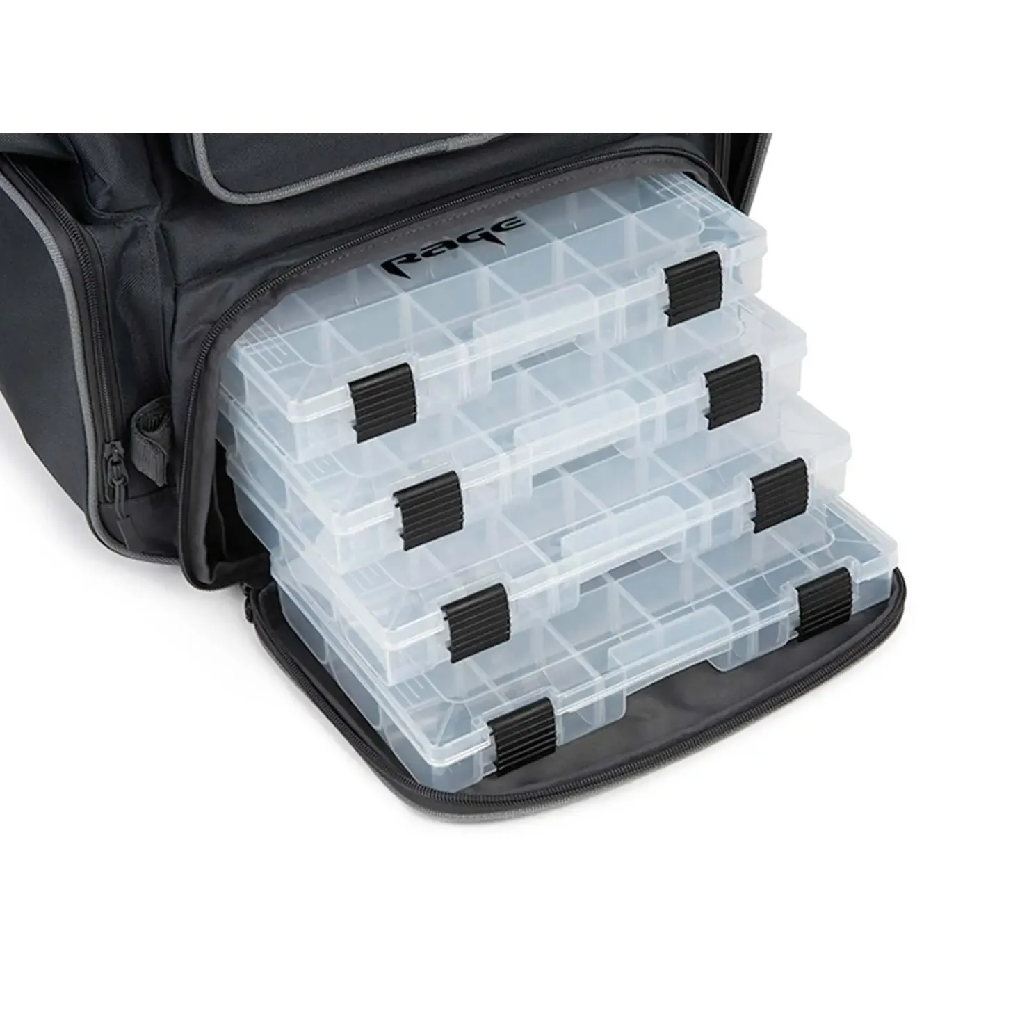 - Hauptfach ist mit 4 flachen Mediumboxen befüllt