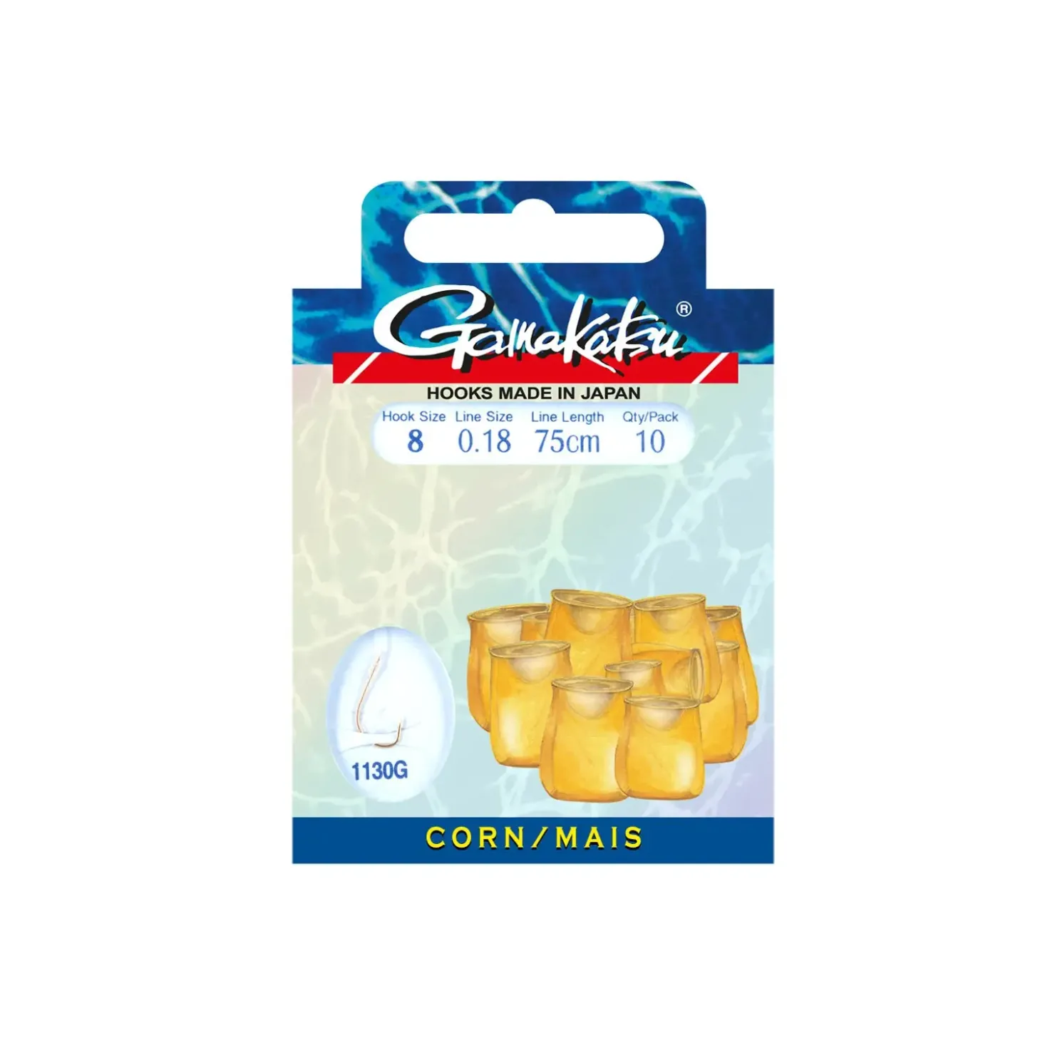 Die Gamakatsu Mais 1130G Vorfachhaken in Profiqualität sind an die starke G-Line gebunden. Die nadelscharfe Spitze sorgt für einen sicheren Anhieb.