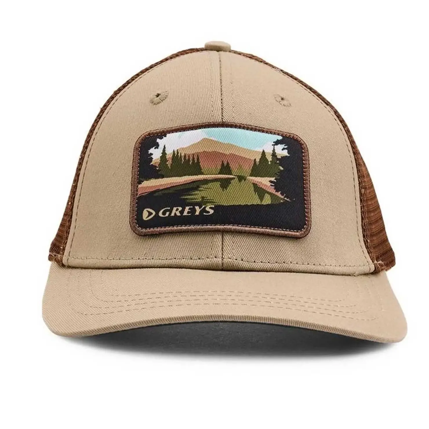 Strukturierter, verstellbarer Greys Scene Hat Mütze mit 6 Paneelen im mittleren Profil und gewebter Grafik auf der Vorderseite sowie einem dunklen Untervisier, um Blendeffekte zu vermeiden. Die innen verschweißten Nähte und die Köpereinlage auf der Vorderseite spiegeln die hochwertige Verarbeitung dieses Huts wider.