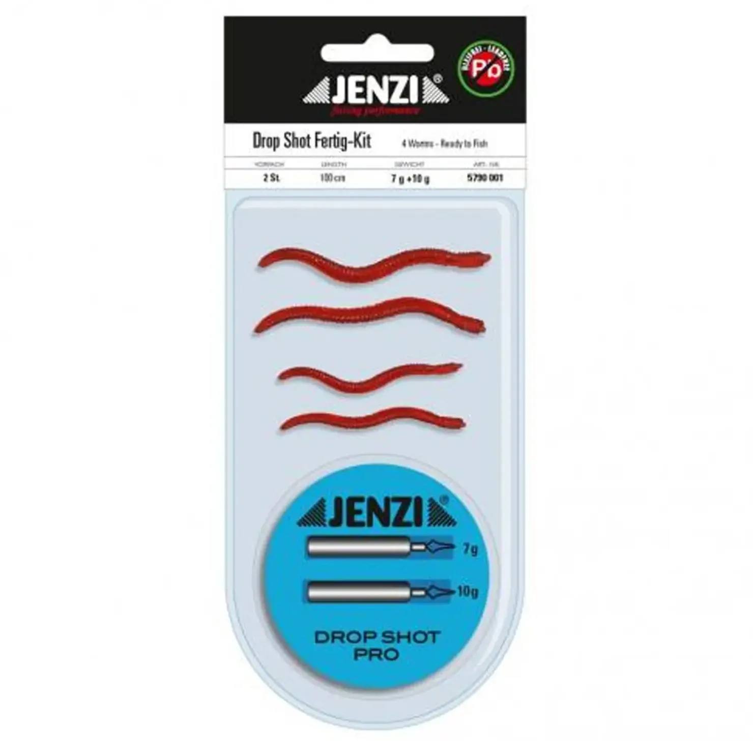 Das Jenzi Dropshot-Set Komplett Wurm/Dendrobena Bleifrei ist ein Drop Shot Fertig-Kit ,Ready to Fish“.