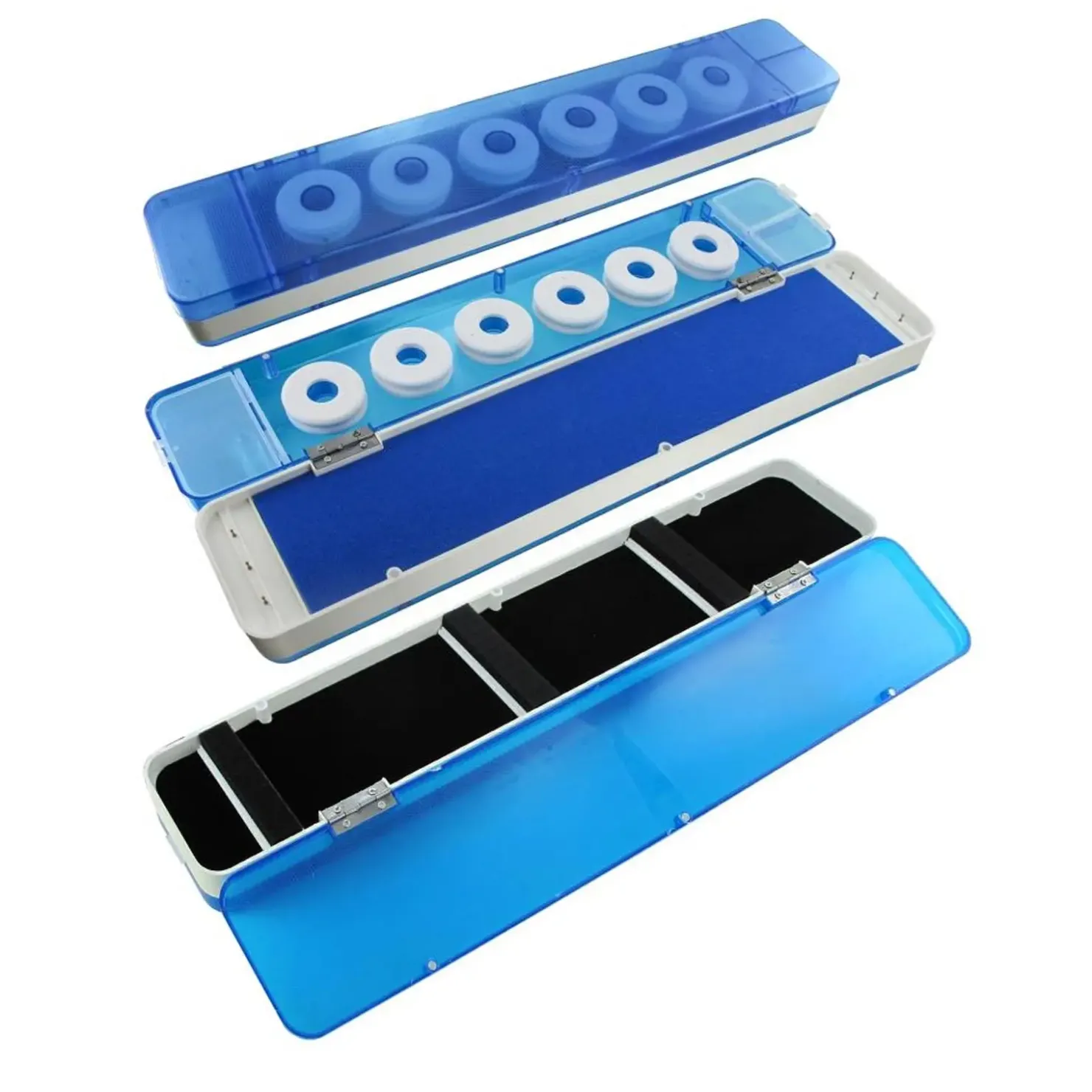 Die Jenzi Kunststoff-Box 45x8x4,5cm mit 6 Spulen ist eine praktische Box für Vorfächer, Hegenen und kleine Utensilien zum Vorfachbau.