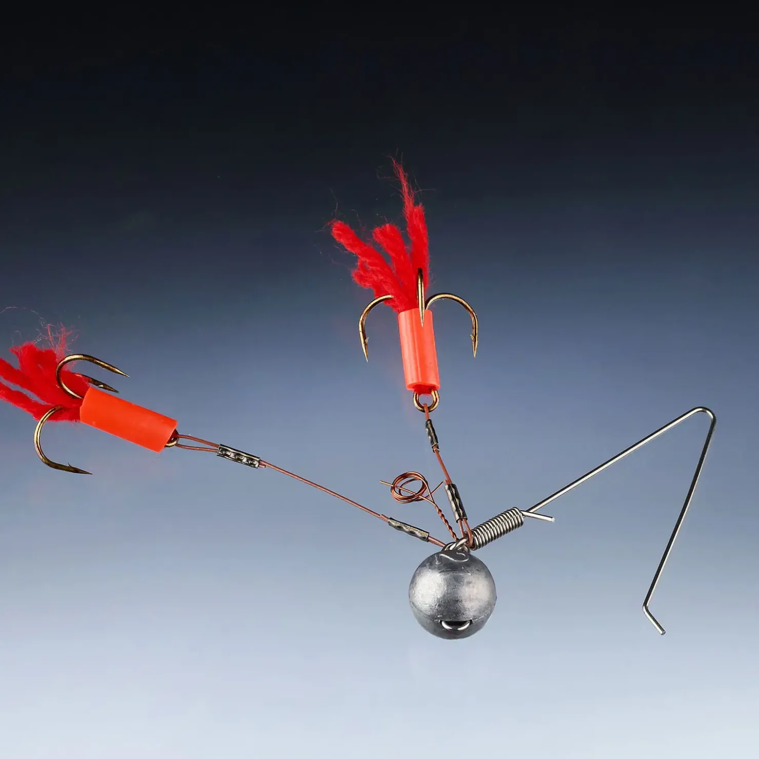 Um einen Köderfisch aktiv zu führen und gleichzeitig für viele Würfe sicher zu befestigen, ist diese System topp! Der Kupferdraht stabilisiert den Halt am Kopf, die Drillinge sorgen für sicheren Grip auf beiden Seiten der Flanke, die Spange bringt die Sache von innen auf Spannung.