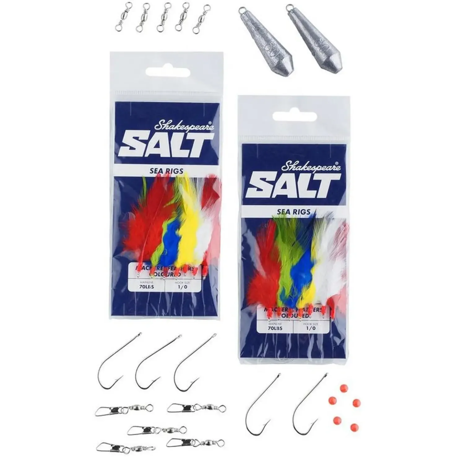 - 2 Sätze Makrelenvorfächern, 2 Bleien, 5 Ersatzhaken, 5 Perlen und 5 Wirbel