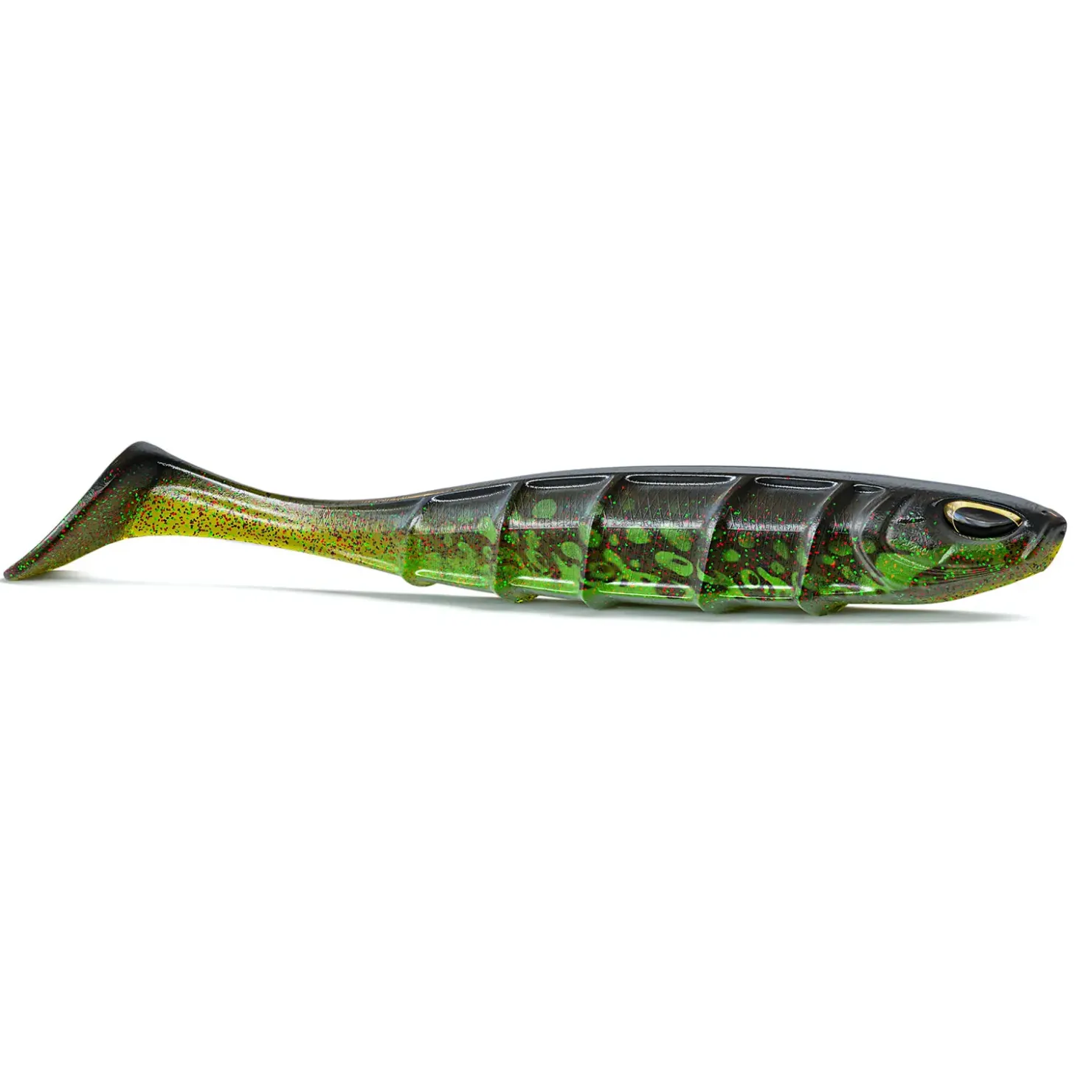 Der Nays HNTR Gummifisch ist ein kraftvoller Paddle Tail, entwickelt für die gezielte Großfischjagd. Sein voluminöser Körper und der breite Schaufelschwanz sorgen für intensive Druckwellen und einen ausgeprägte Rolling Action, der Räuber auch aus größerer Entfernung anzieht.