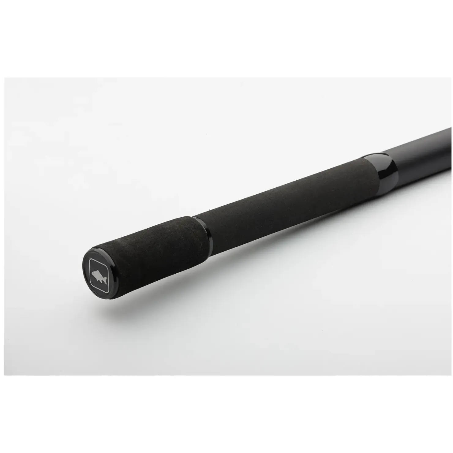 Der elegante entspiegelte Satin-schwarze Blank, der Maschinen-gefrästen belüftete Rollenhaltern und der super schlanke mit japanischem Schrumpfschlauch ummantelte Griff runden das Gesamtbild dieser Karpfenrute ab.