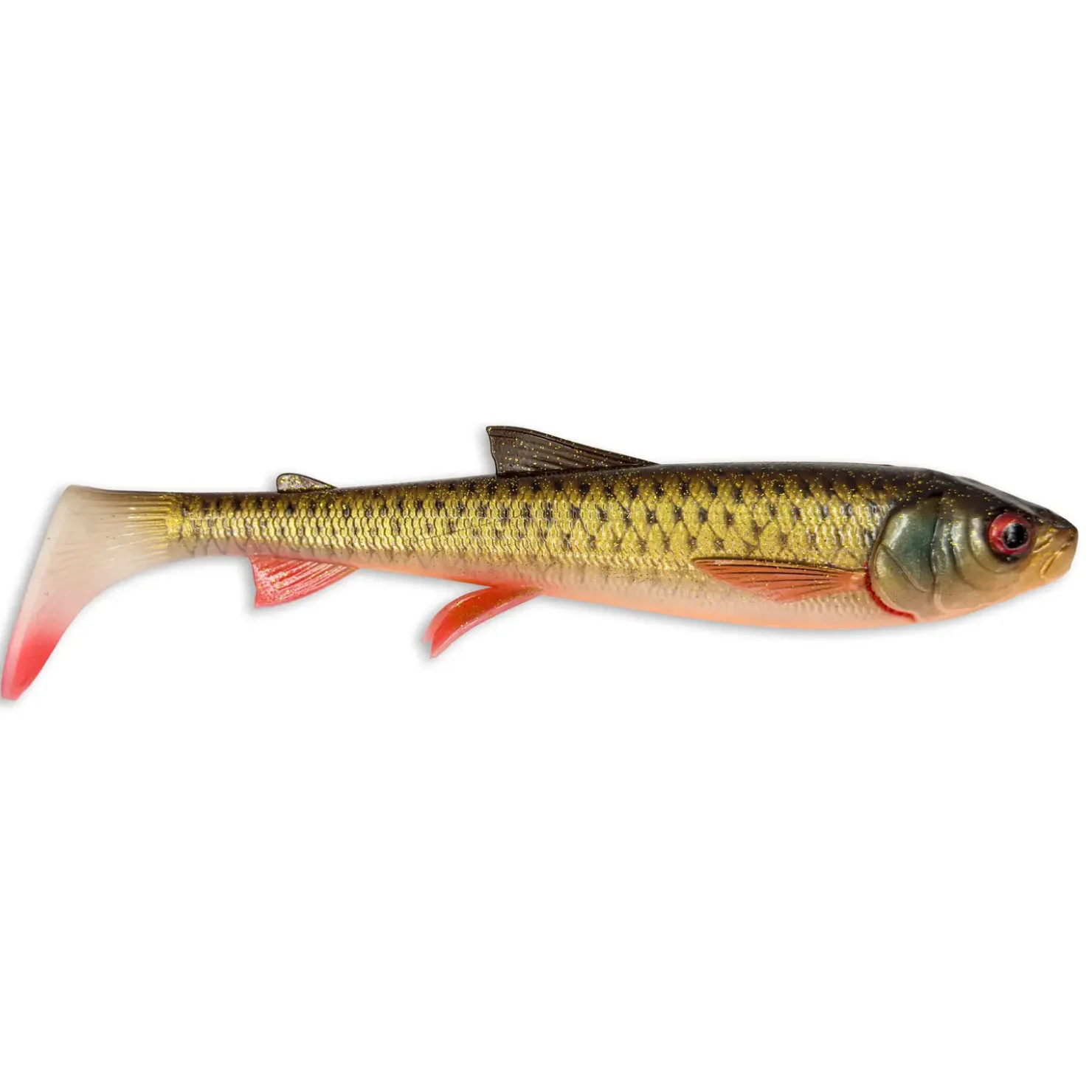 Dieser Savage Gear 3D Whitefish Shad, der auf dem Scan eines echten Weißfisches basiert, zeichnet sich durch makellose Details und eine fantastische Roll- und Kick-Aktion aus. Der wuchtige Kopf und der vordere Körper verdrängen viel Wasser und verleihen dem Köder eine große Stabilität bei flacher Führung. Die beweglichen und sehr realistischen Flossen ergänzen den großen Paddelschwanz, der mit einer lauten Glasrassel versehen ist, um die Fische zusätzlich zu reizen. Hergestellt aus superweichem PVC-Material mit atemberaubenden Farben und anlockendem Aroma.