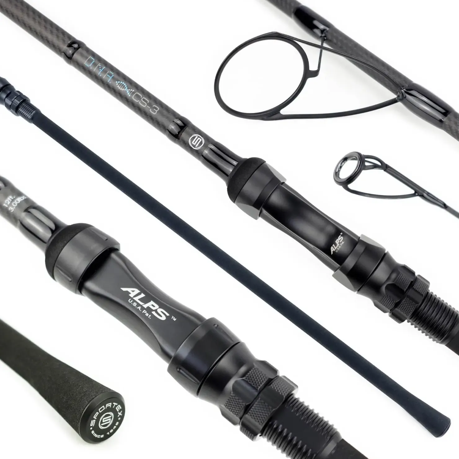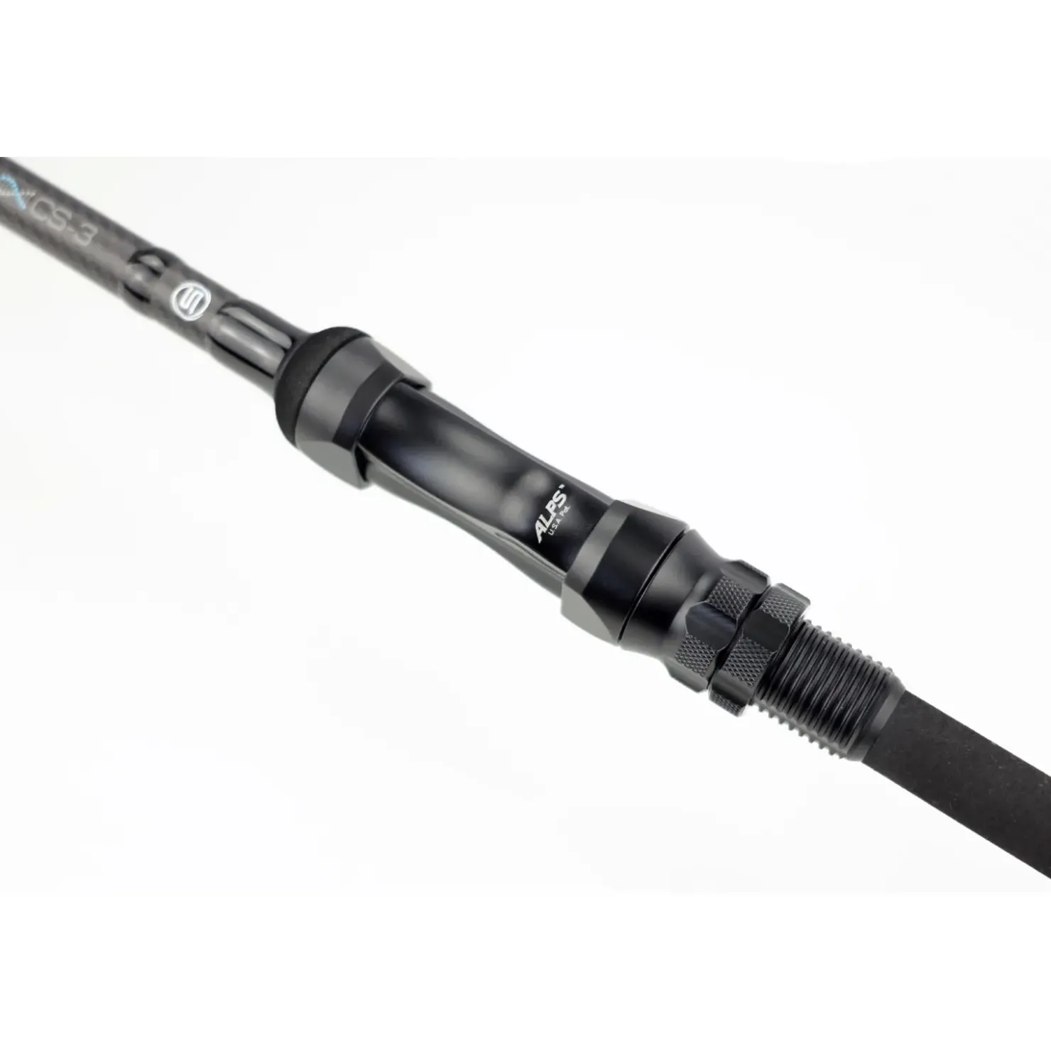 Natürlich verfügen die Ruten auch über eine sehr moderne Ausstattung wie z.B. einen schwarz-matten Aluminium Rollenhalter von ALPS, extra schlanke und leichte, matt-schwarze TI Forged AIR KW-Ringe von American Tackle (Startring Größe 50) und einen extra schlanken, durchgehenden und rutschhemmenden „Full-Shrink“ Hintergriff.