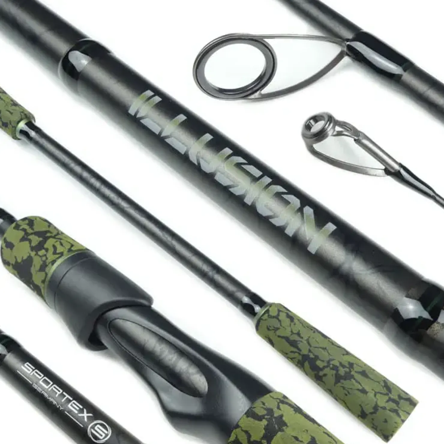 Die Sportex Illusion Spinnrute besticht vor allem durch ihre enorme Auswahl an spezialisierten Ruten für die Kunstköderangelei. Speziell angepasste Längen und Wurfgewichte ermöglichen Dir eine optimale Handhabung der Rute bei der Raubfischjagd. Um die perfekte „Extra Fast“ Rutenaktion mit ausreichender Power und Feinfühligkeit zu erhalten, wird für alle Blanks japanisches High-Performance-Carbon verwendet. Dieses sorgt für hervorragende Wurfleistungen, sowie für außerordentliche Kraftreserven im Drill. Die Illusion Serie bringt alles mit, was Du benötigst, um Hecht, Zander, Barsch & Co erfolgreich über den Kescher zu ziehen. Das „Sharpshooter“ Modell IL2202 ist übrigens ideal für die „LiveScope“ Angelei geeignet. Zudem gibt es mit der IL1950 auch noch ein Pelagic-Modell mit einem extra längerem Handteil. Ausgestattet sind die Ruten mit KW / KL / KT-Style SIC-Ringen, TVS- oder ACS- Style Rollenhalter und robusten „Camou“ EVA Split Duplongriffe.