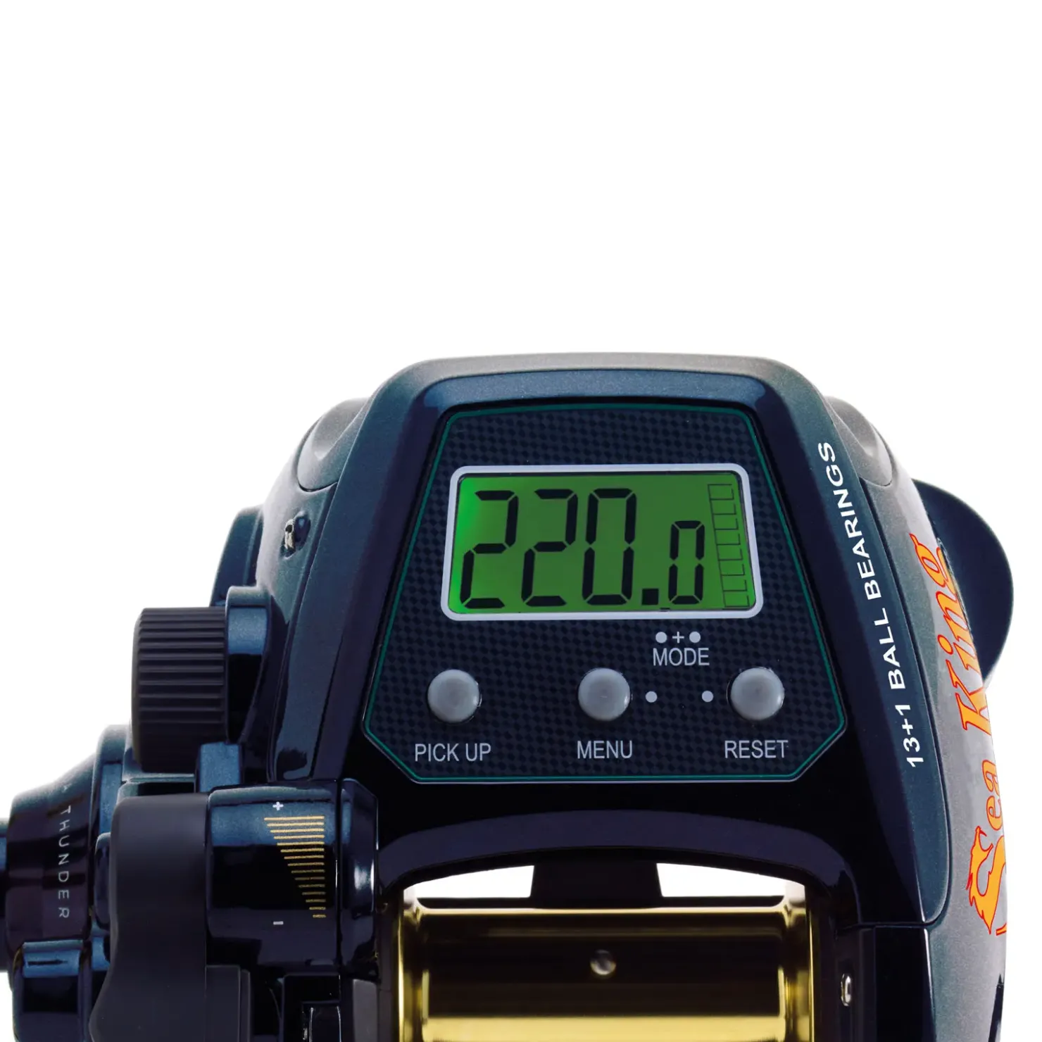 Die Rolle ist leicht und nicht größer als eine manuell betriebene Multirolle gleicher Schnurfassung. Sie bietet den Komfort einer Elektrorolle auf höchstem Niveau.